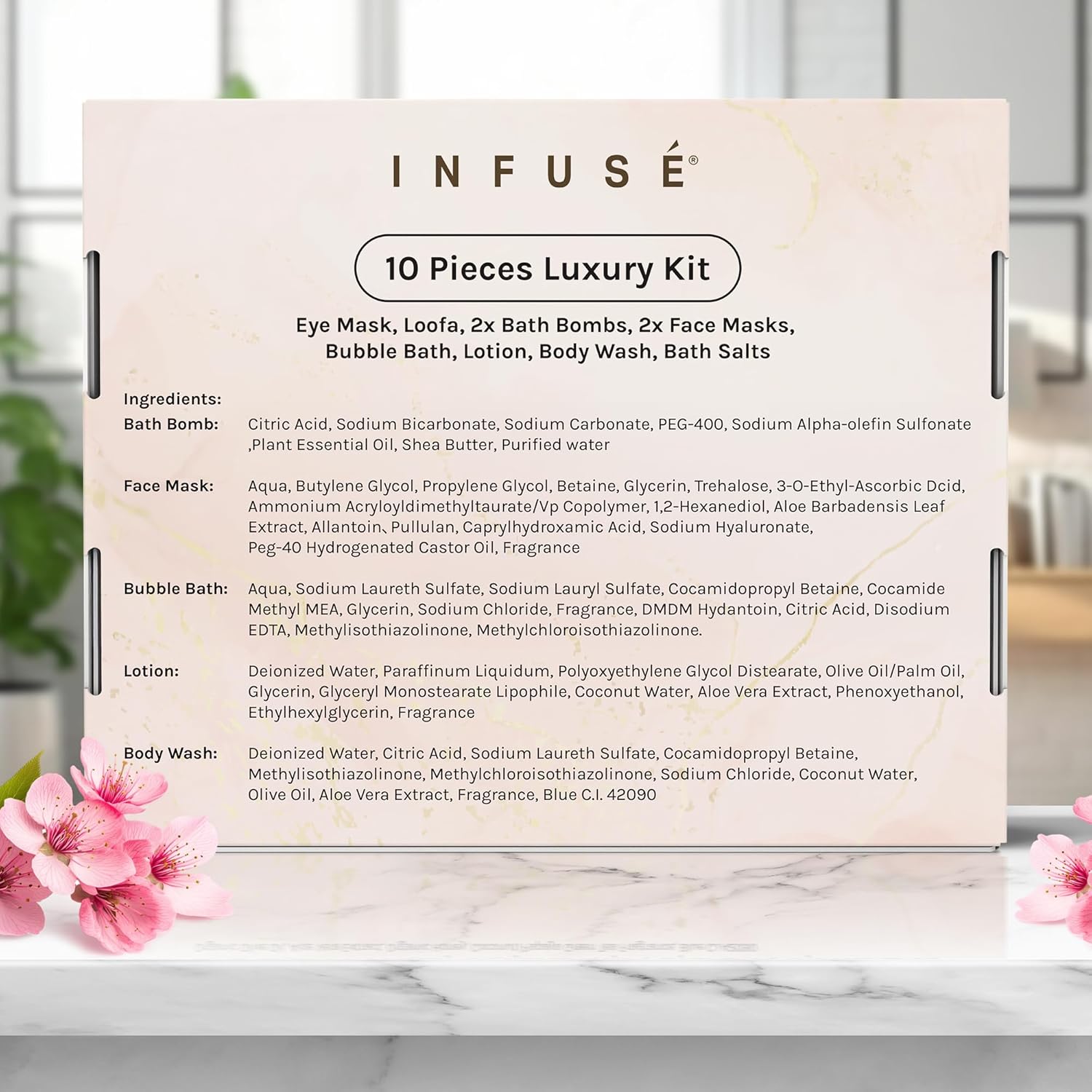 10-Piece Spa Gift Box for Women | Self-Care Set with Eye Mask, Loofa,Bath Bombs,Face Masks,Bubble Bath, Lotion, Body Wash & Bath Salt | Gift for Mom, Grandma, Wife, Bridesmaid or Loved Ones