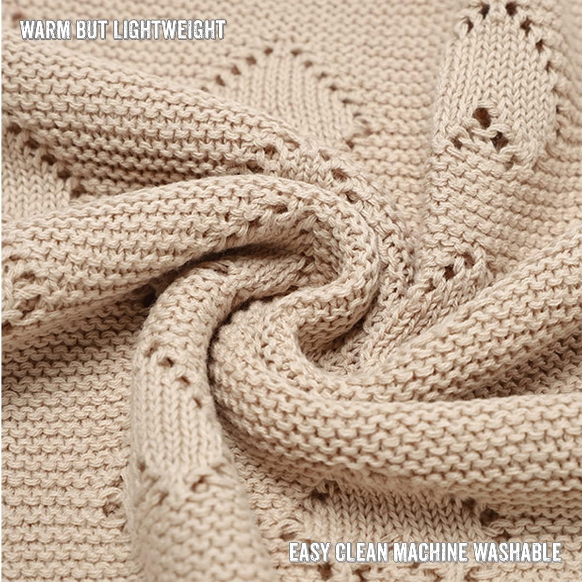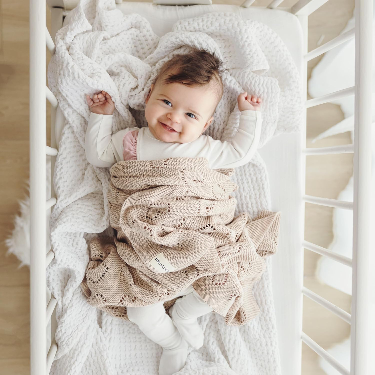 100% Luxury Cotton Heart Swaddle Knit Baby Blanket for Girls and Boys - Soft Warm Cozy Swaddling Receiving Stroller Crib Blanket for Newborns Infants & Toddlers (Oatmeal, 0-2 Years)