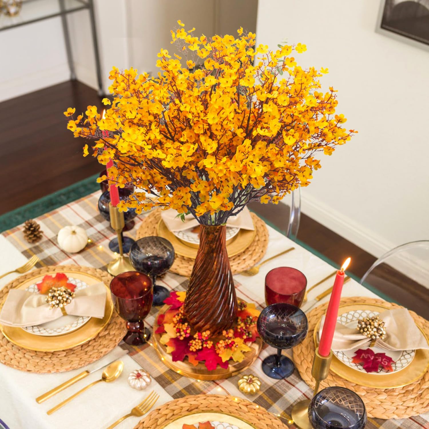 Vibrant Color and Fall Aesthetic: These Babys Breath Artificial Flowers come in a vibrant orange color that perfectly complements the autumn season. Whether used as table centerpieces for fall-themed events or as decorative accents around the house, these flowers will bring warmth and charm to any space.