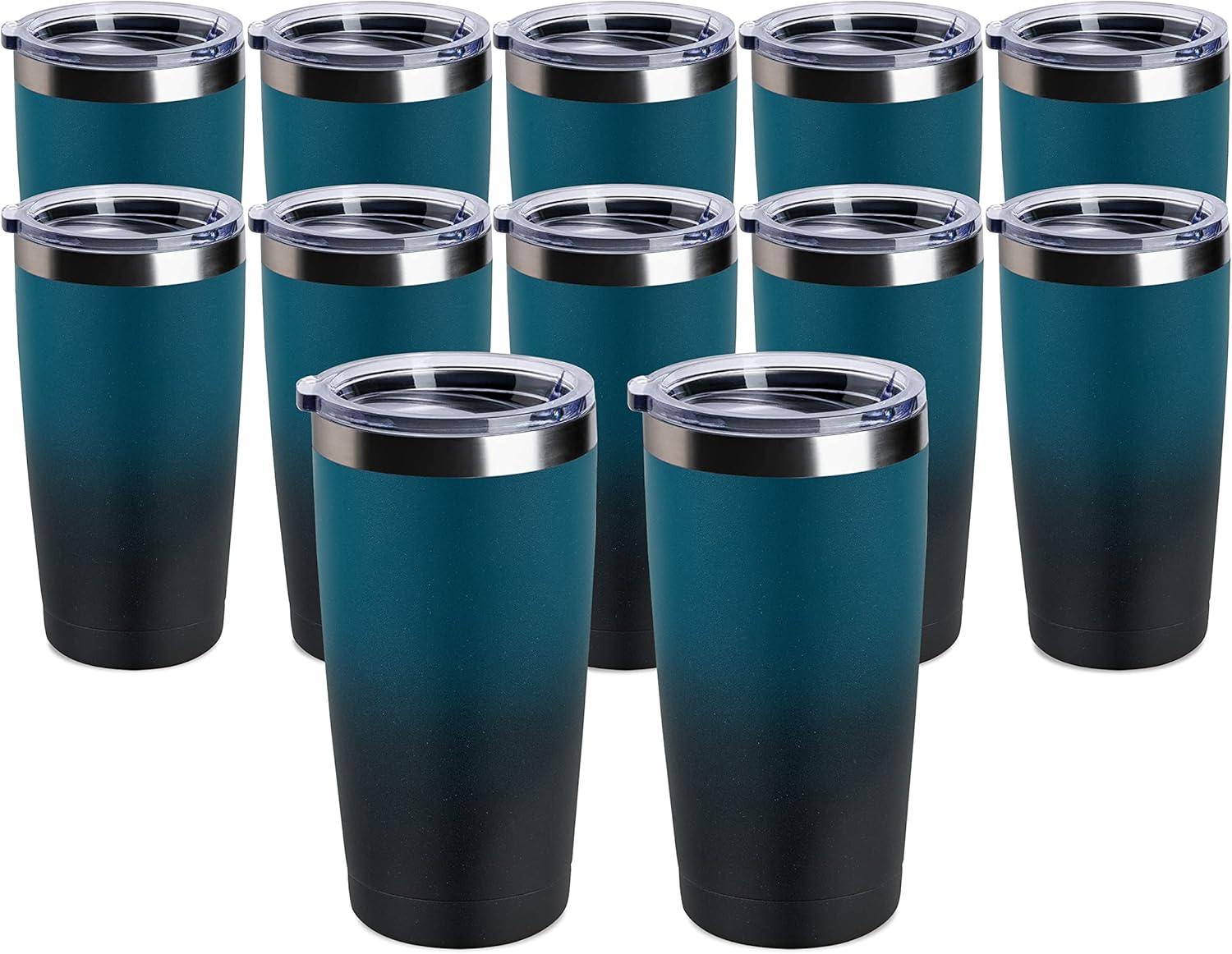 12 pack 20 OZ Double Wall Stainless Steel Vacuum Insulated Tumbler Coffee Travel Mug With Lid, Durable Powder Coated Insulated Coffee Cup for Cold & Hot Drinks (OmbreIndigo, 12pack)