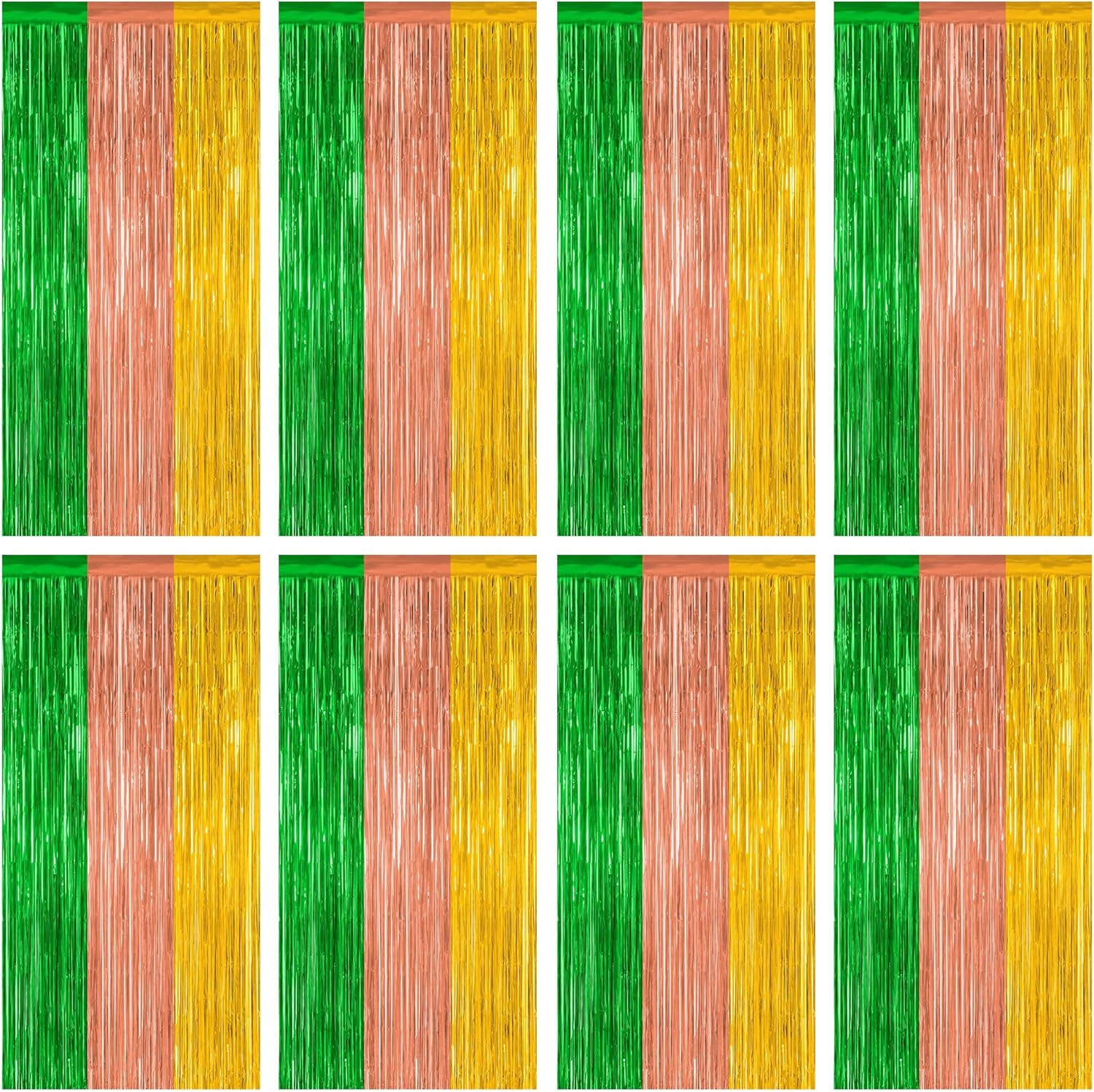 Package Includes: This set includes 8 pcs Hawaiian foil curtains consisting of green, brown and yellow colors, each measuring 3.28 x 7.05 feet and can be cut to your desired length.