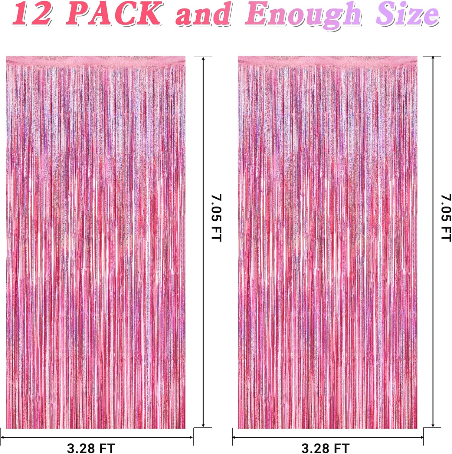 12 Pack Pink Backdrop, 3.28 FT x 7.05 FT Foil Streamers, Metallic Glitter Backdrop Pink Tinsel Fringe Curtains Party Streamers, Pink Birthday Party Decorations Photo Booth Props