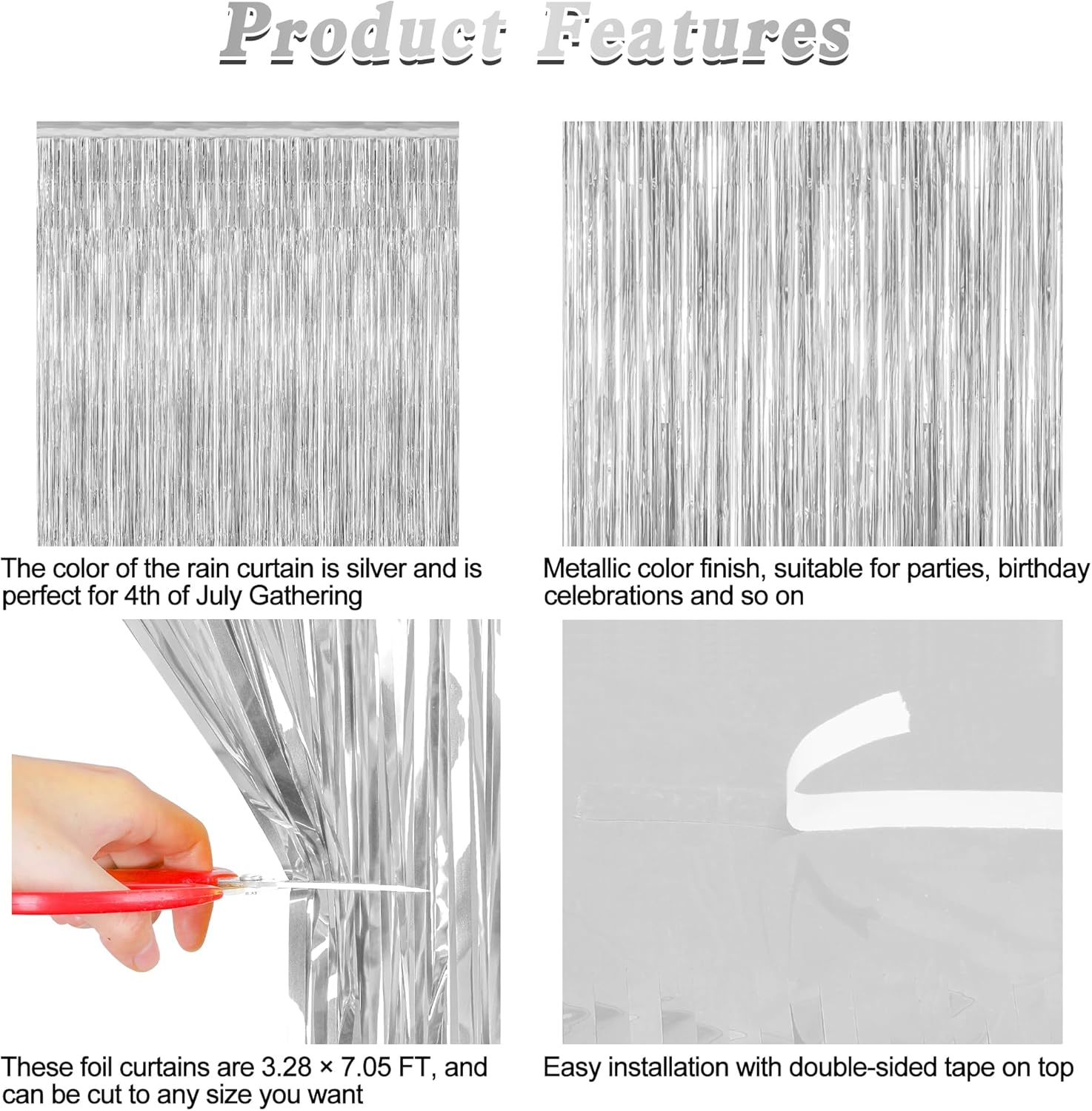 Design: Each silver curtains features a sleek silver color with a reflective metallic surface, adding a touch of elegance and shine to your decor, suitable for your photo booth props.