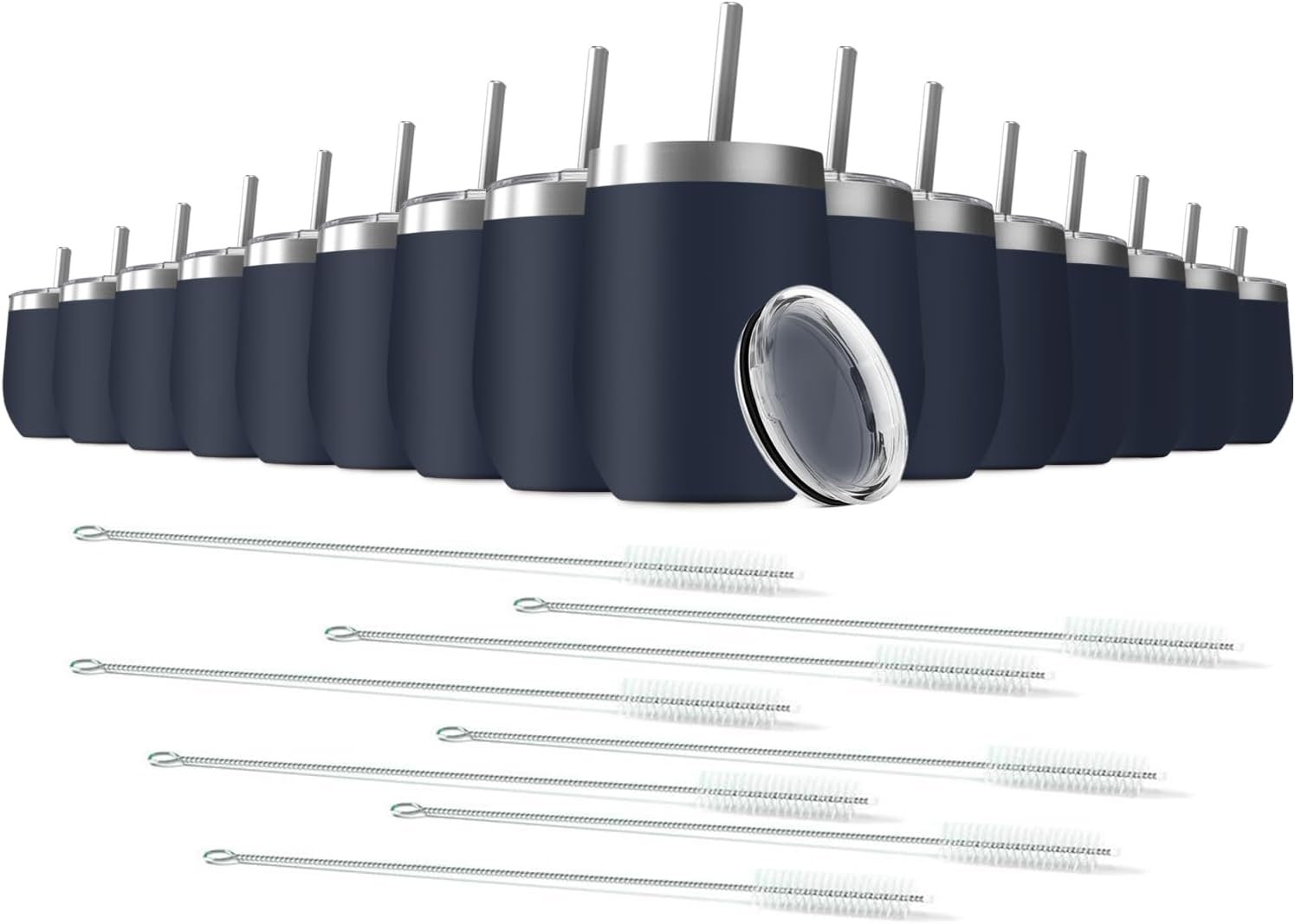 12oz Wine Tumbler with Lid With straw Stainless Steel Wine Tumbler Cups Double Wall Vacuum Insulated Travel Mugs Stemless Cup 16 Pack