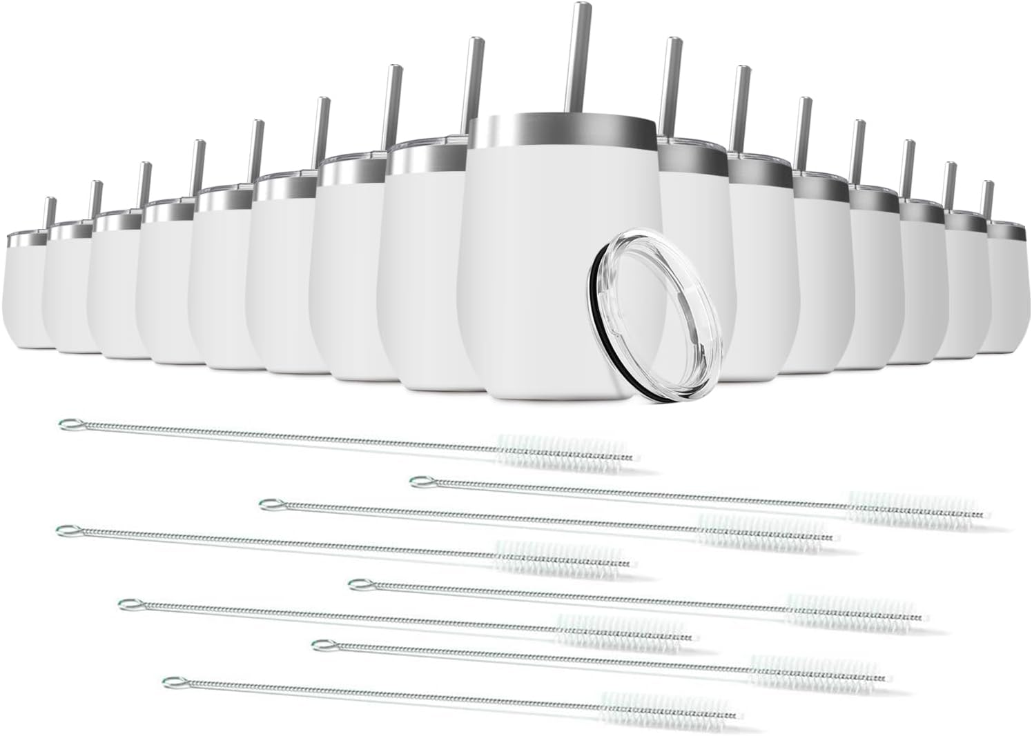12oz Wine Tumbler with Lid With straw Stainless Steel Wine Tumbler Cups Double Wall Vacuum Insulated Travel Mugs Stemless Cup 16 Pack