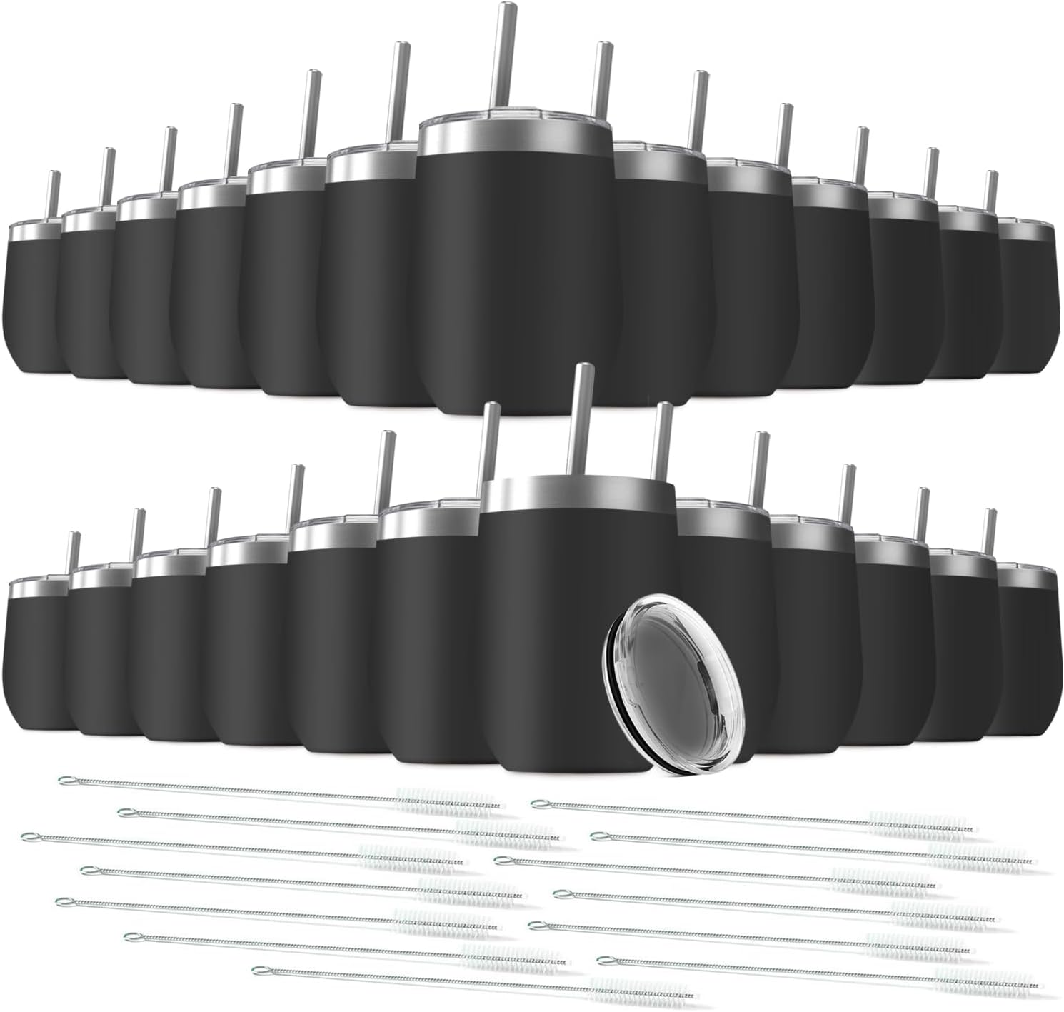 12oz Wine Tumbler with Lid With straw Stainless Steel Wine Tumbler Cups Double Wall Vacuum Insulated Travel Mugs Stemless Cup 25 Pack