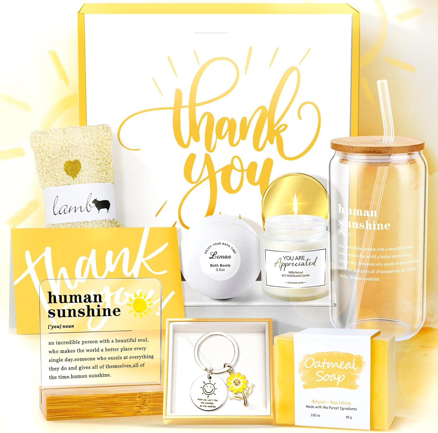 12PCS Thank You Gifts for Women, Sunshine Appreciation Gifts for Coworkers, Sunshine Box Employee Appreciation Baskets, Thanks You Baskets for Women Friends Teacher, Mentor, Families, Friends, Leaders