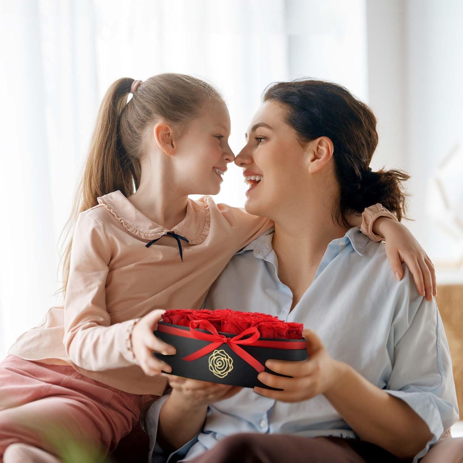 Premium Quality: Each eternal rose is hand-selected and treated with eco-friendly preservation techniques; the box wrapped in black faux leather paper adorned with gold-embossed patterns and heartfelt blessings