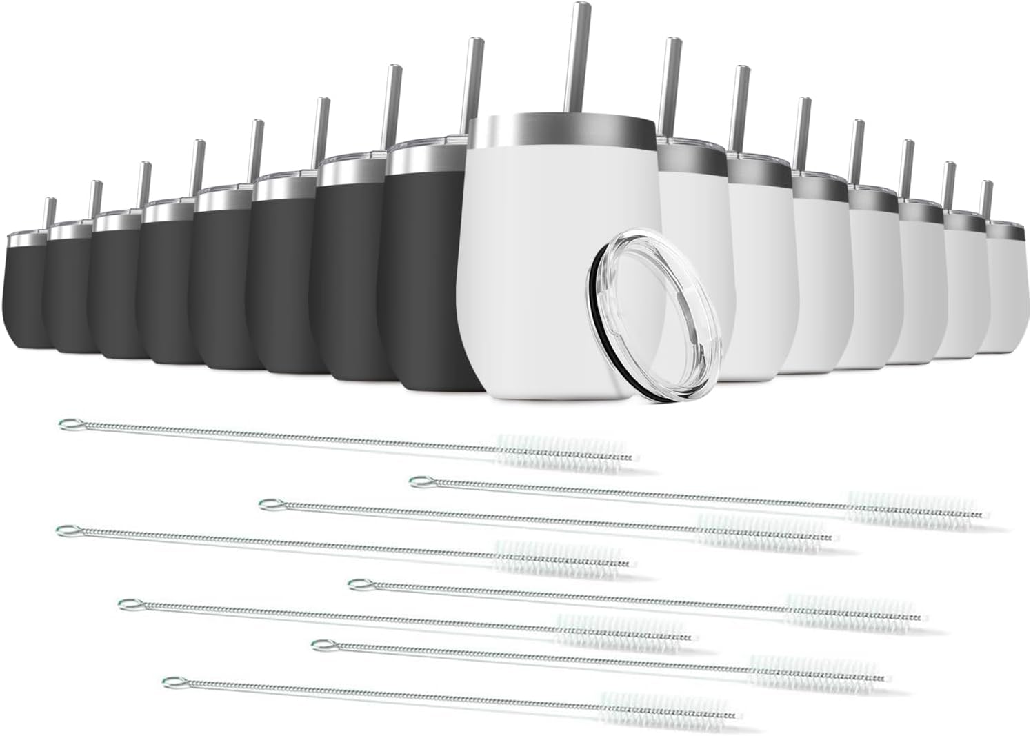 16 Pack 12oz Wine Tumbler with Lid With straw Stainless Steel Wine Tumbler Cups Double Wall Vacuum Insulated Travel Mugs Stemless Cup
