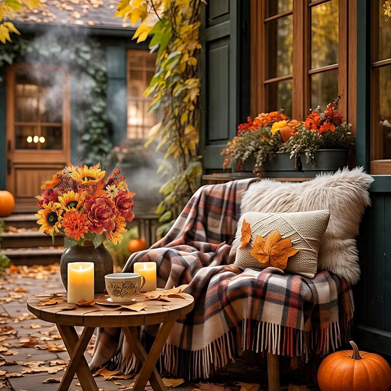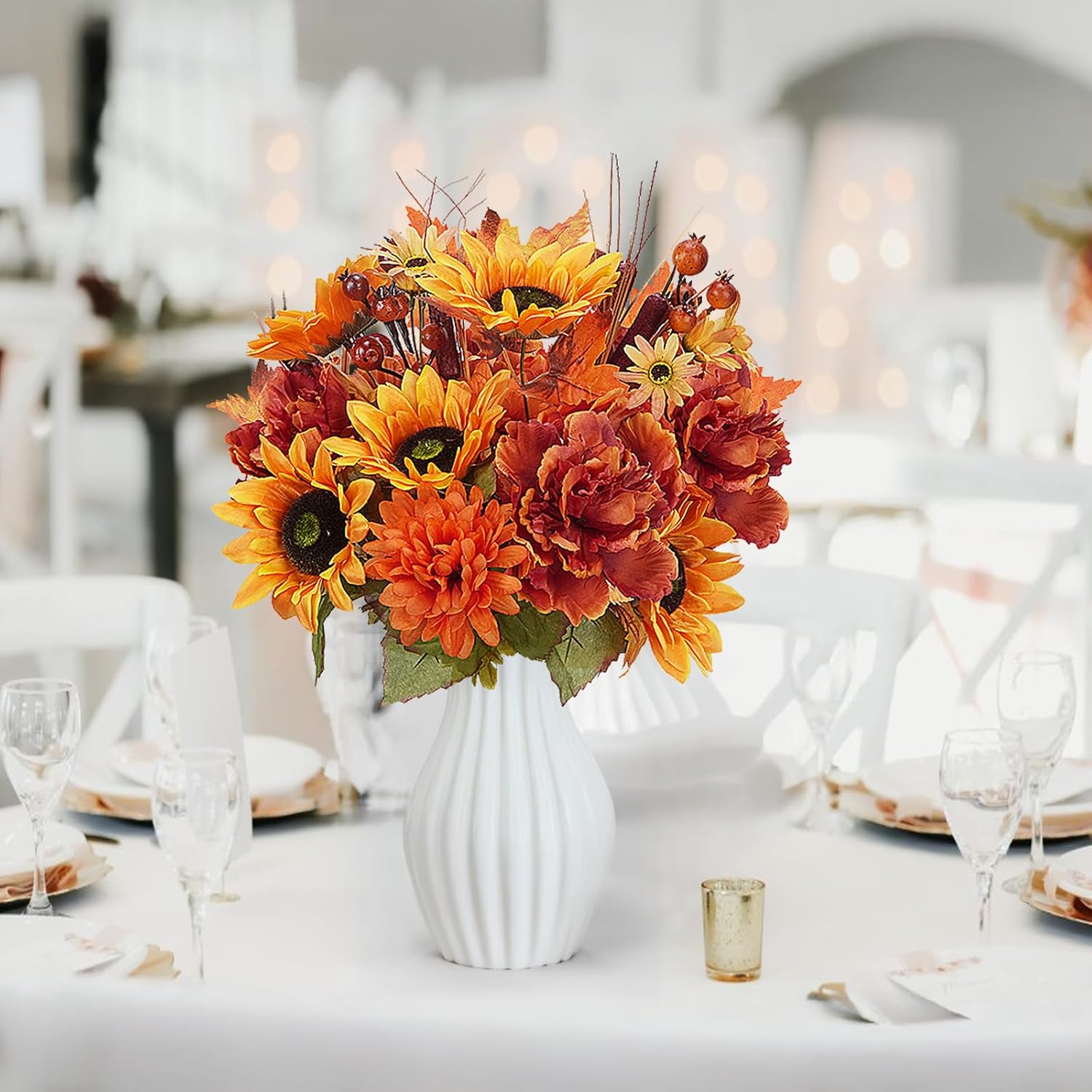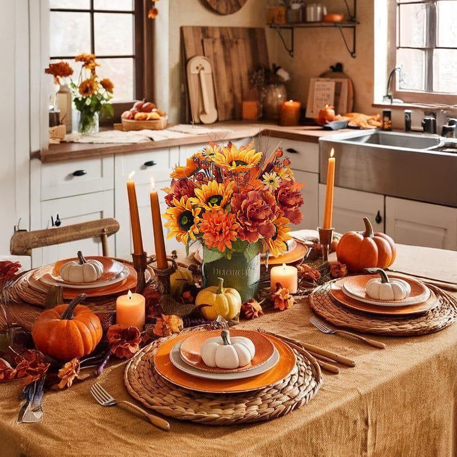 Fall Decoraions for Indoor/Outdoor: Fall flowers artificial for decoration can be used for decorating indoor or outdoors, suitable for interiors, parties, kitchens, tables, gravestones, cemeteries, weddings, autumn flower arrangements and many other occasions