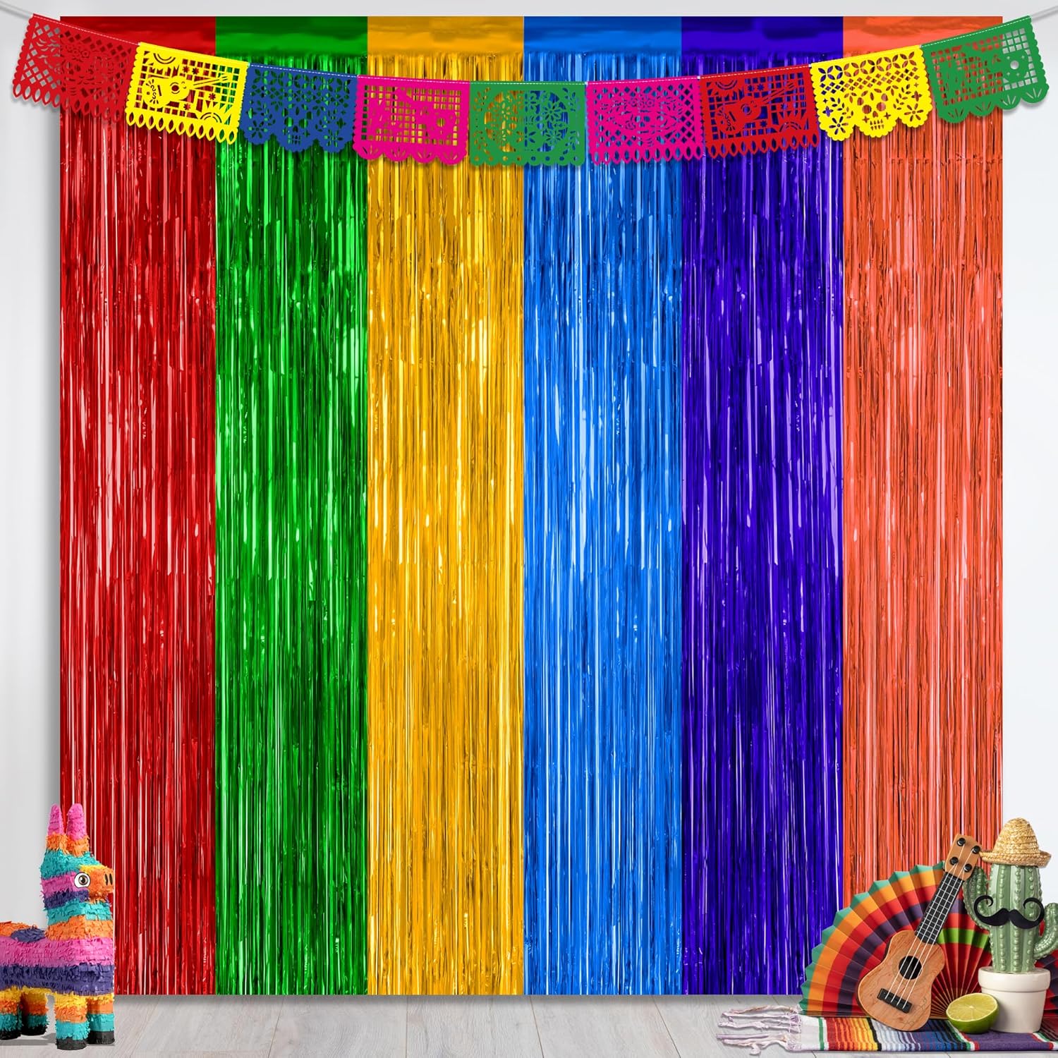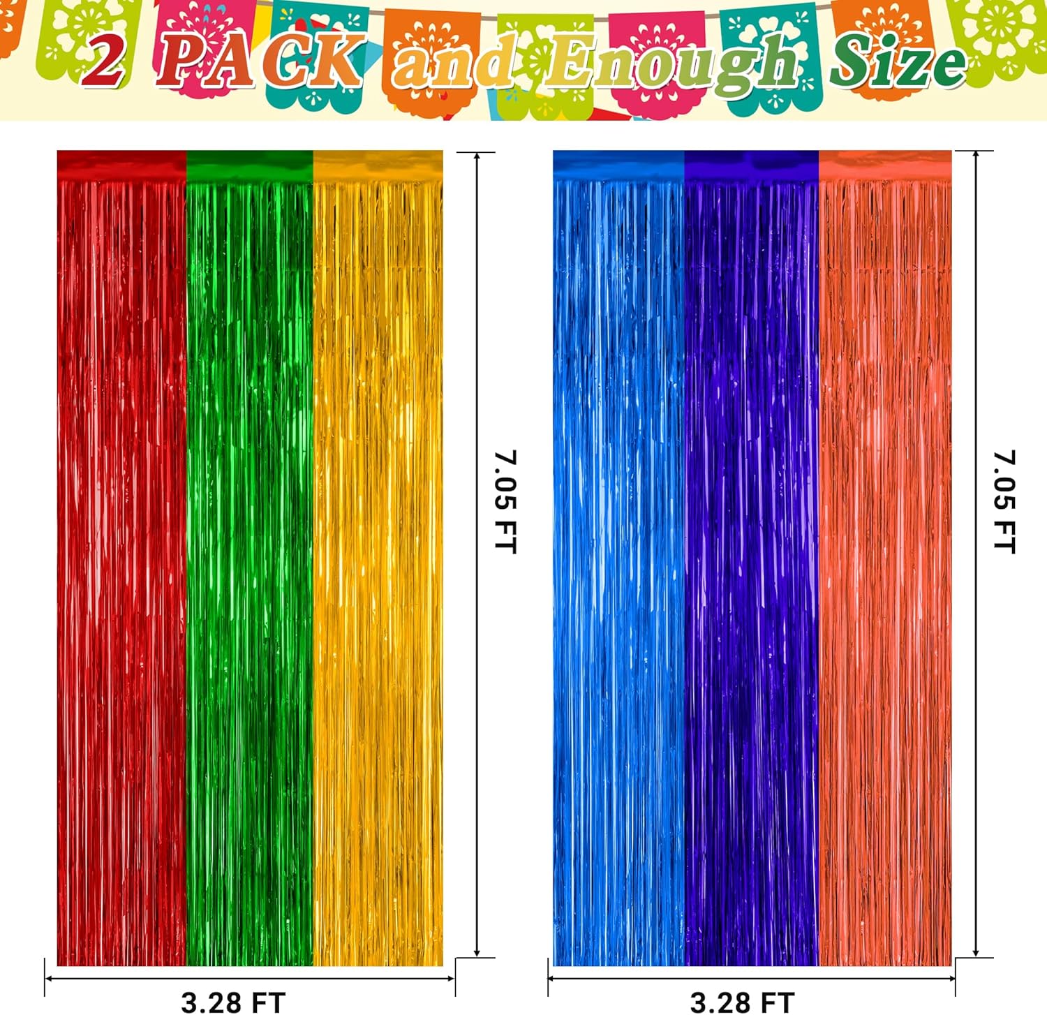 Package Includes: This set includes 2 pcs rainbow foil curtains in Mexican colors, each measuring 3.28 ft x 7.05 ft, feel free to cut them to your desired length.