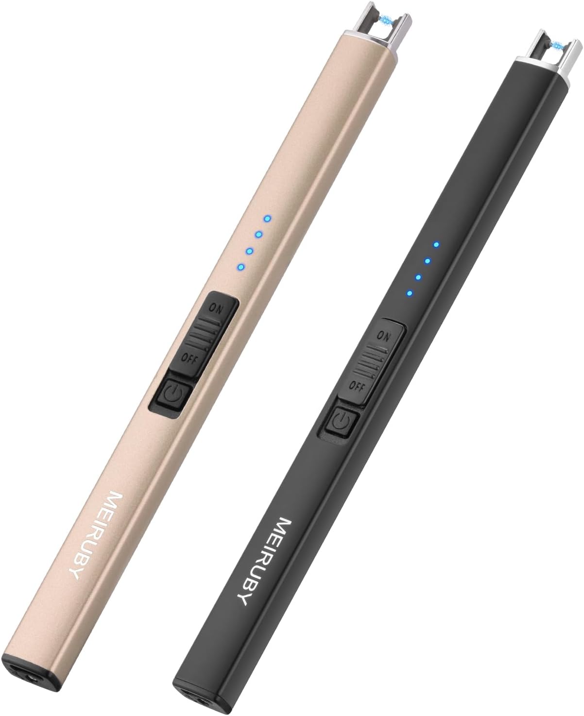 2 Pack Electric Candle Lighter - Long, Rechargeable, Arc, Windproof, Flameless Lighters for Candle, Camping, BBQ, Birthday Gifts
