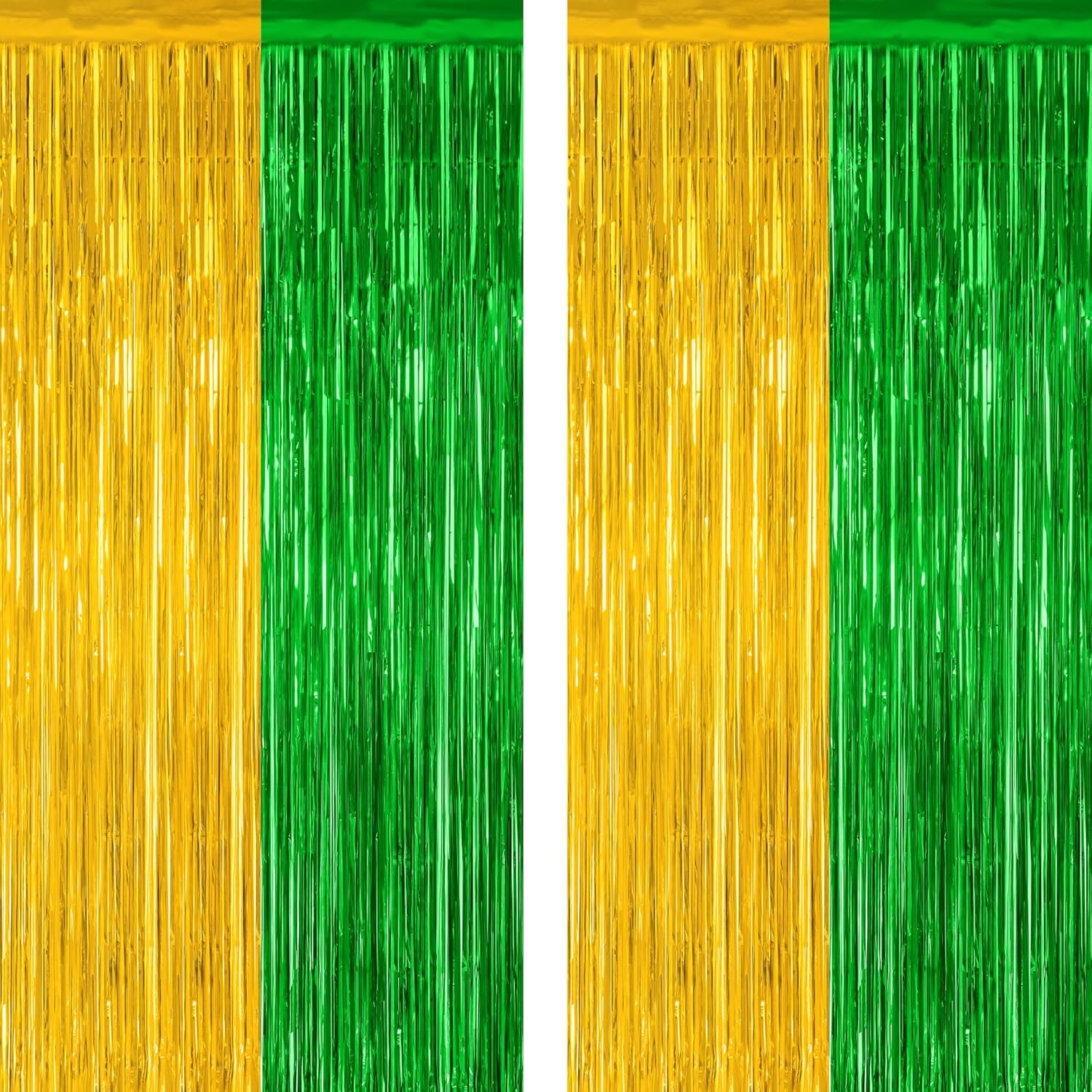 Package Includes: You will receive 2 pcs green and gold backdrop, each party streamer is 3.28 ft x 7.05 ft, it is long enough to be cut to your desired size, suitable for doors, windows, tables and many other places.