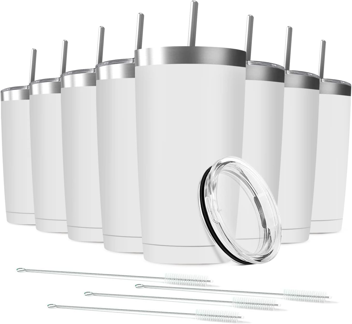 20oz Tumbler Vacuum Insulated Travel Mug with Lids, Stainless Steel Double Wall Bulk Cup for Home, Office, Outdoor Suitable for Vehicle Cup Holders(Set of 8, White)