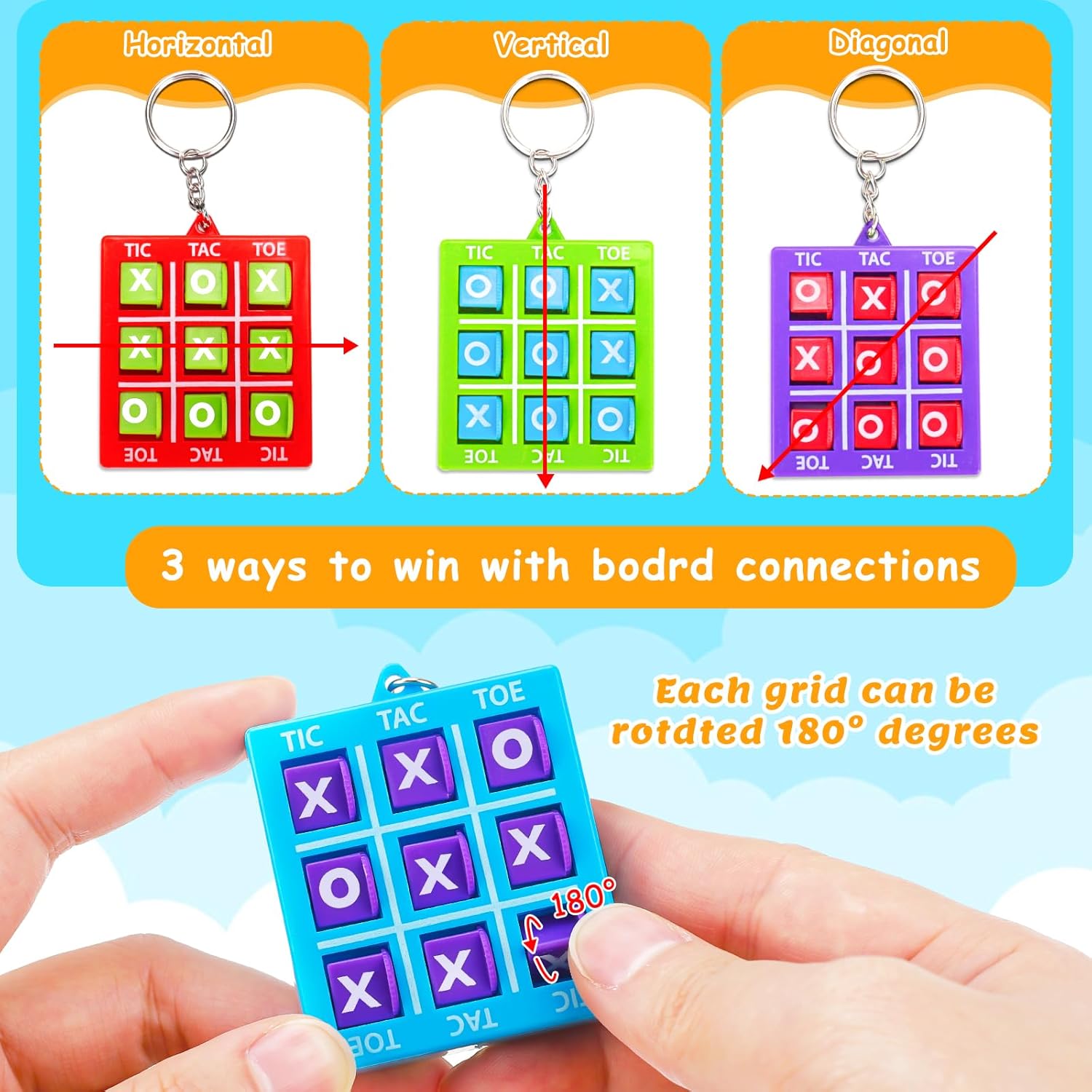 Premium Quality Kids Party Favors】Our tic tac toys are child-safe, non-toxic, BPA-free and meet US toy standards. The colorful tic-tac-toe keychains are made of high quality plastic, and the keychain itself is made of metal, which is sturdy and durable, not easy to break or deform, can be used for a long time. Awesome party favors for kids 8-12, prizes for elementary students, kids party favors goodie bags,end of year student gifts from teacher.