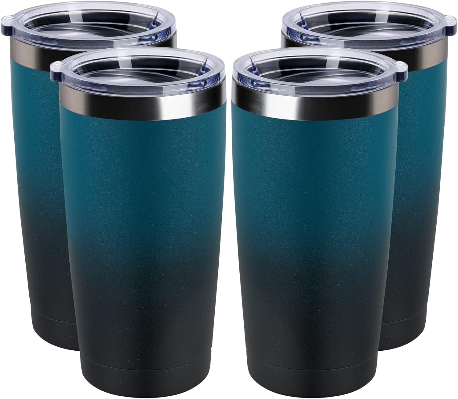 4 pack 20 OZ Double Wall Stainless Steel Vacuum Insulated Tumbler Coffee Travel Mug With Lid, Durable Powder Coated Insulated Coffee Cup for Cold & Hot Drinks (OmbreIndigo, 4pack)