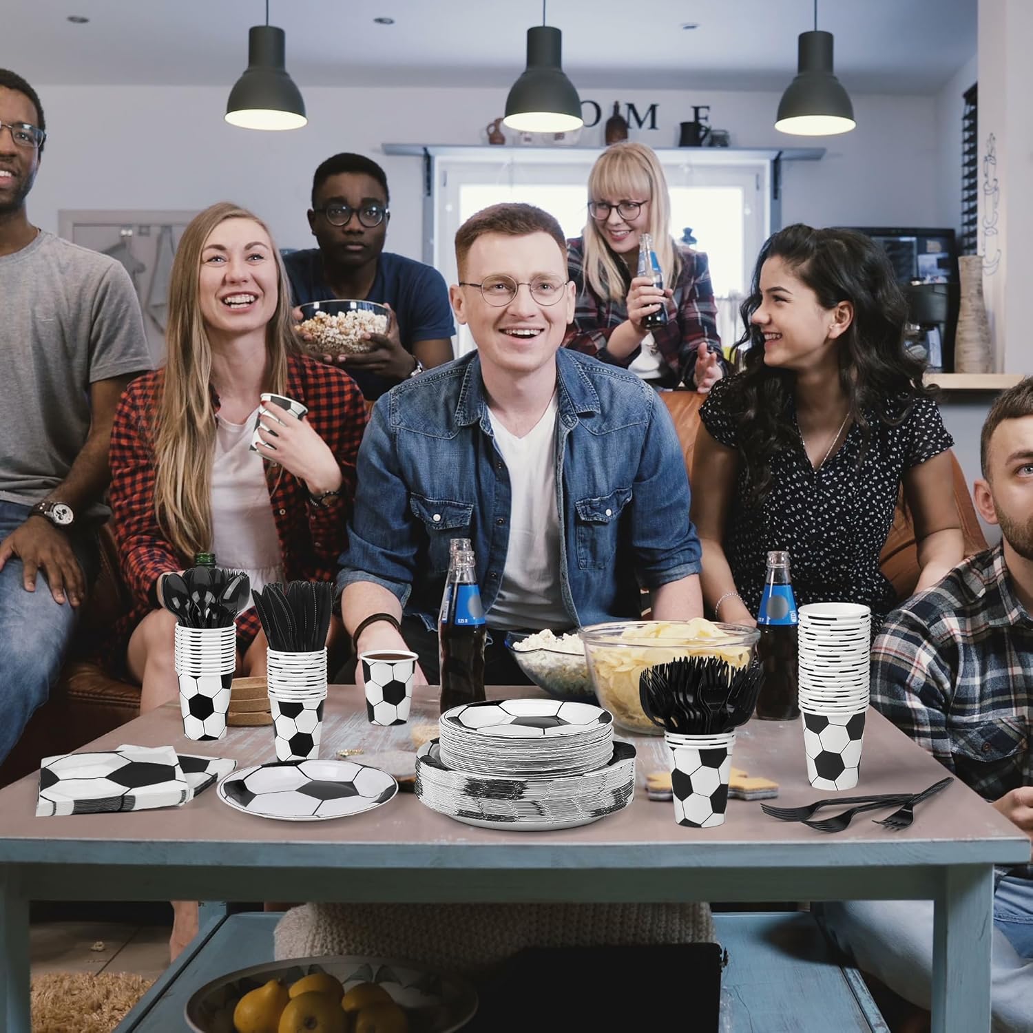 Practical gift: the plates, cups, napkins and cutlery are disposable, you can throw the soccer party supplies away directly after use without worrying about the mess or spending a lot of time on cleaning, so you can give the soccer theme party tableware set as a practical gift to your friends or family