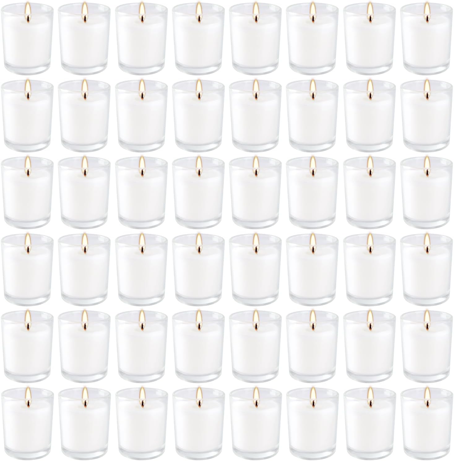 48 Pack White Unscented Clear Glass Filled Votive Candles. Hand Poured Wax Candle Ideal Gifts for Aromatherapy Spa Weddings Birthdays Holidays Party (White)