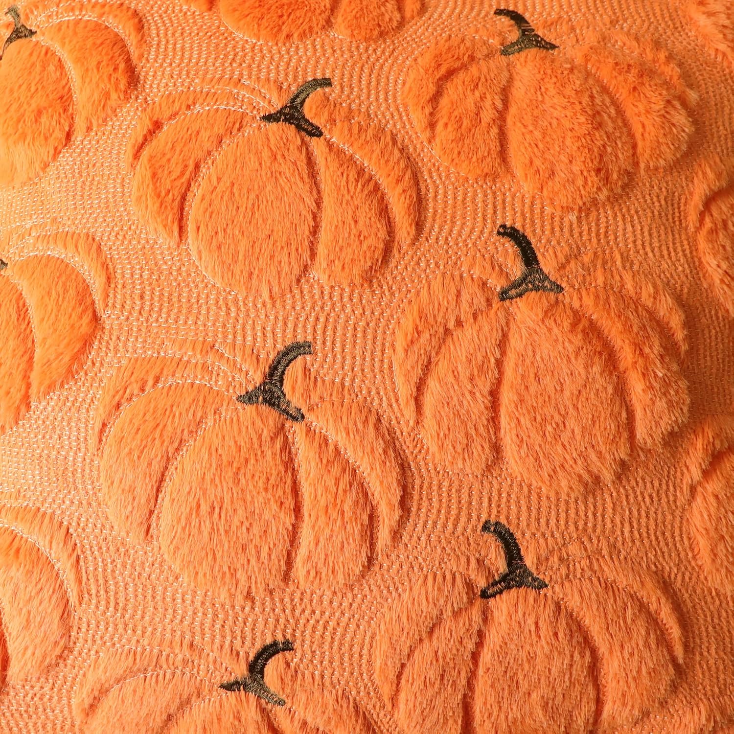 4TH Emotion Fall Pumpkins Decorative Lumbar Pillow Covers 12x20 Set of 2, Orange Soft Plush Faux Fur Wool Farmhouse Throw Cushion Cases for Autumn Thanksgiving Holiday Home Decorations