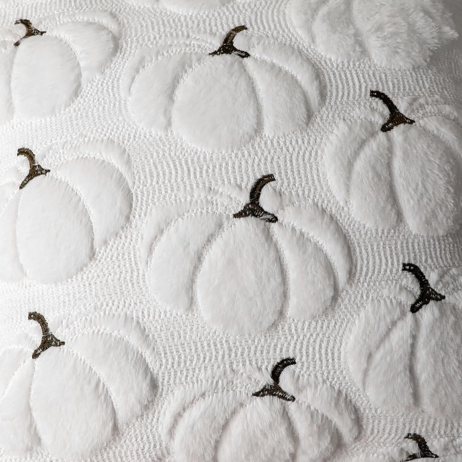 4TH Emotion Fall Pumpkins Decorative Pillow Covers 16x16 Set of 2, White Soft Plush Faux Fur Wool Farmhouse Throw Cushion Cases for Autumn Thanksgiving Holiday Home Decorations