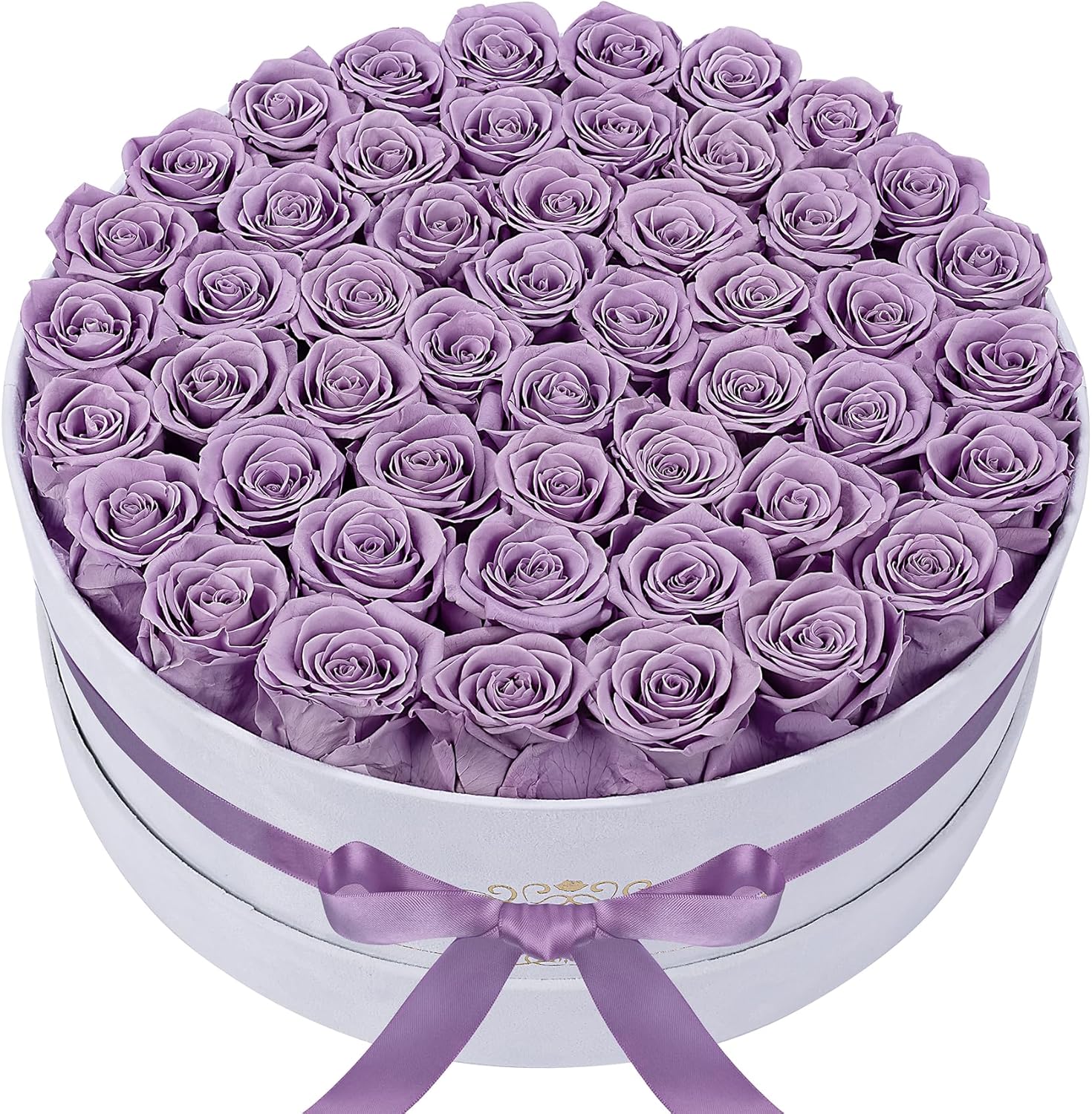 50 Piece Roses in a Velvet Box, Flowers for Delivery, Presereved Flowers Birthday Gifts for Women Mom and Wife (Lavender)