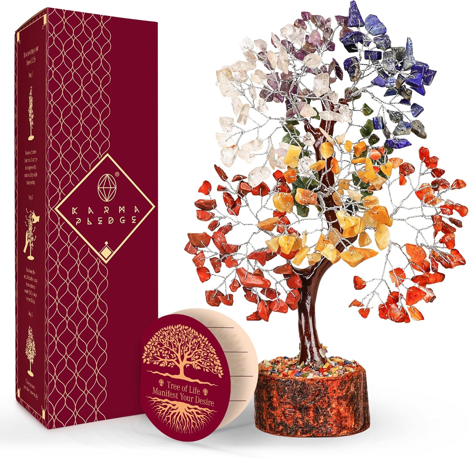 CHAKRA BALANCE: The 7 chakra crystal tree represents the Root Chakra (Red Jasper), Sacral Chakra (Carnelian), Solar Plexus Chakra (Citrine), Heart Chakra (Green Aventurine), Throat Chakra (Lapis Lazuli), Third Eye Chakra (Amethyst), and Crown Chakra (Clear Quartz). These stones are associated with positiveness and can bring luck, wealth, and prosperity.