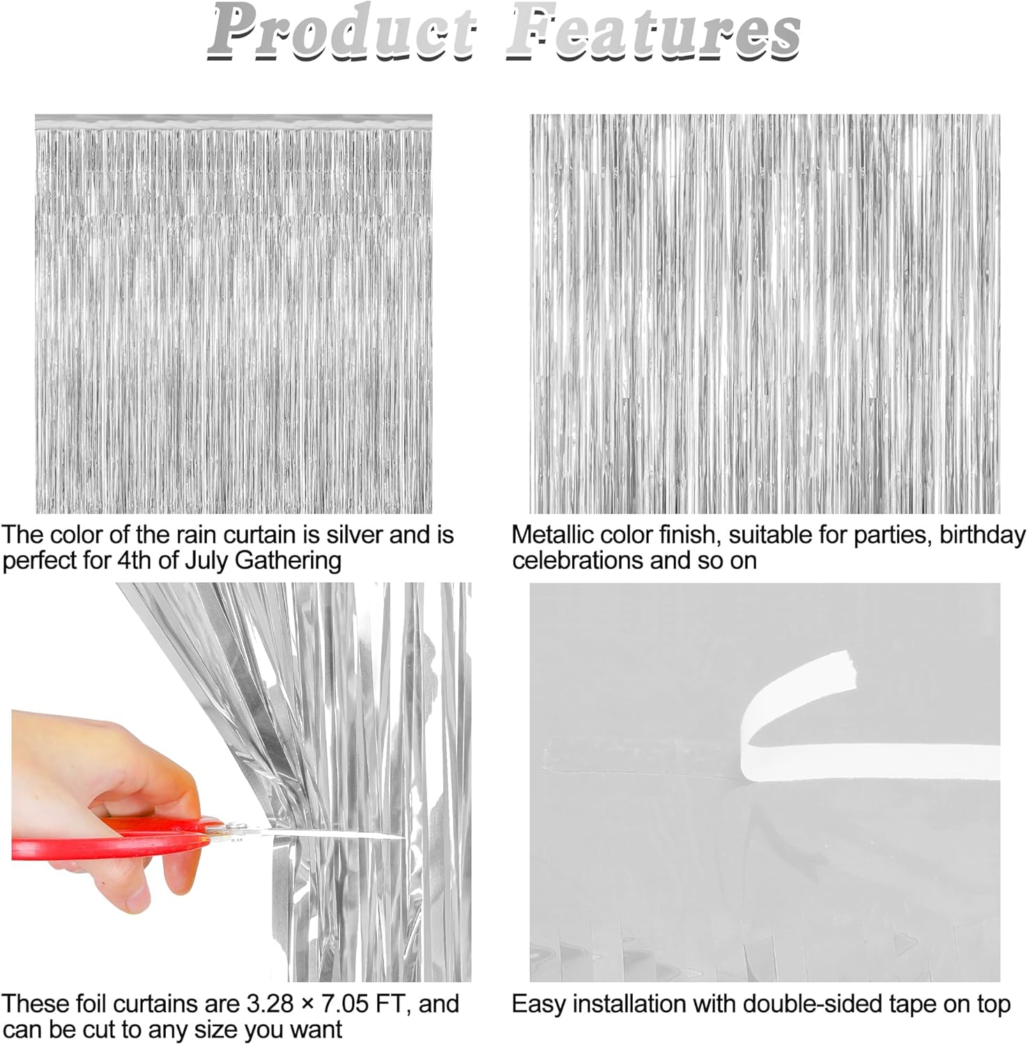 Easy to Install: Each silver curtain comes with an adhesive strip at the top. Simply peel off the backing and stick the streamer backdrop to any smooth surface for a quick and hassle-free setup.