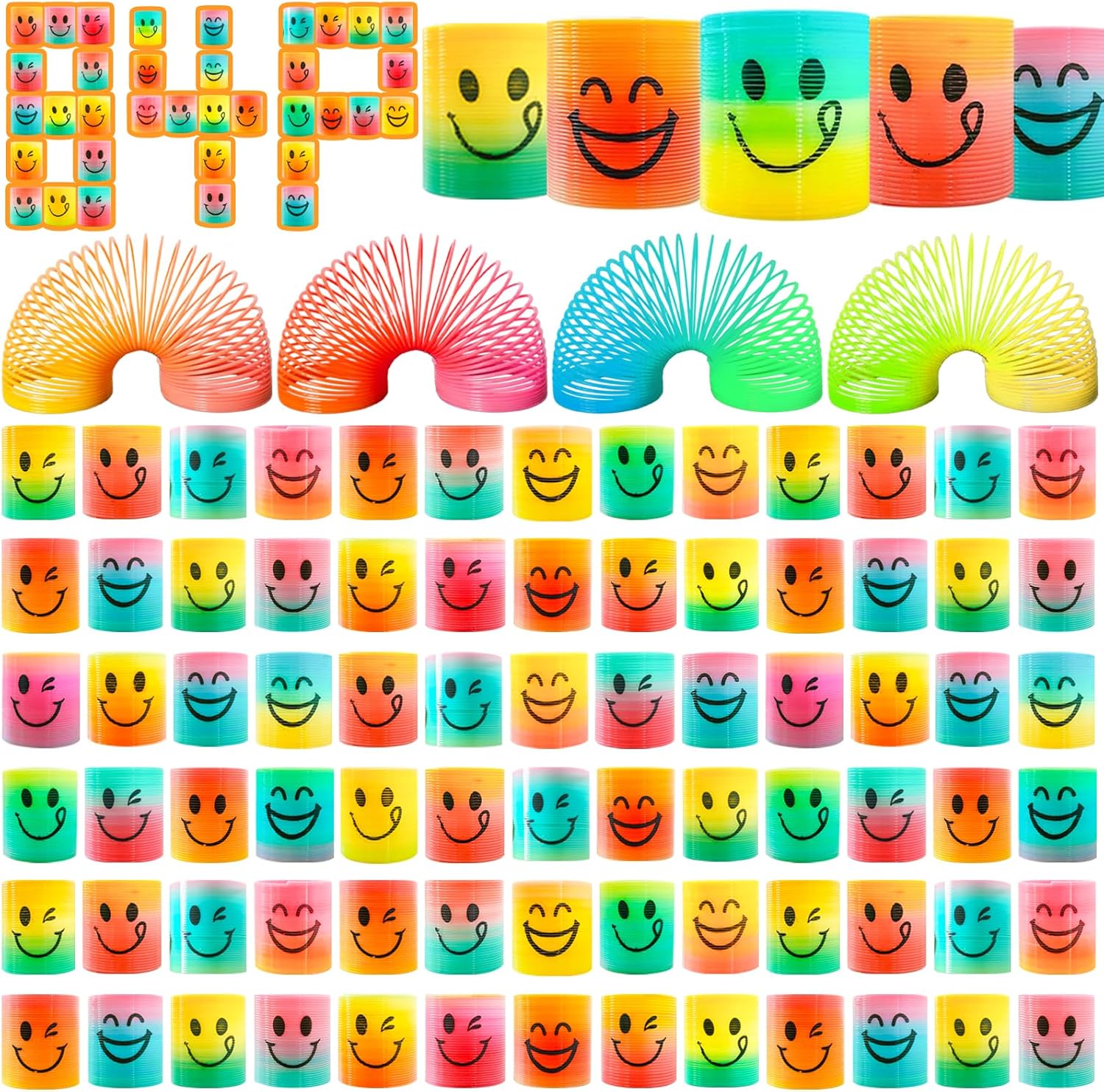 PARTY FAVOR SET - Package contains 84 brightly colored springs. Every spring, there are four different smiling faces. You're sure to impress your guests and friends with these birthday gifts bag fillers