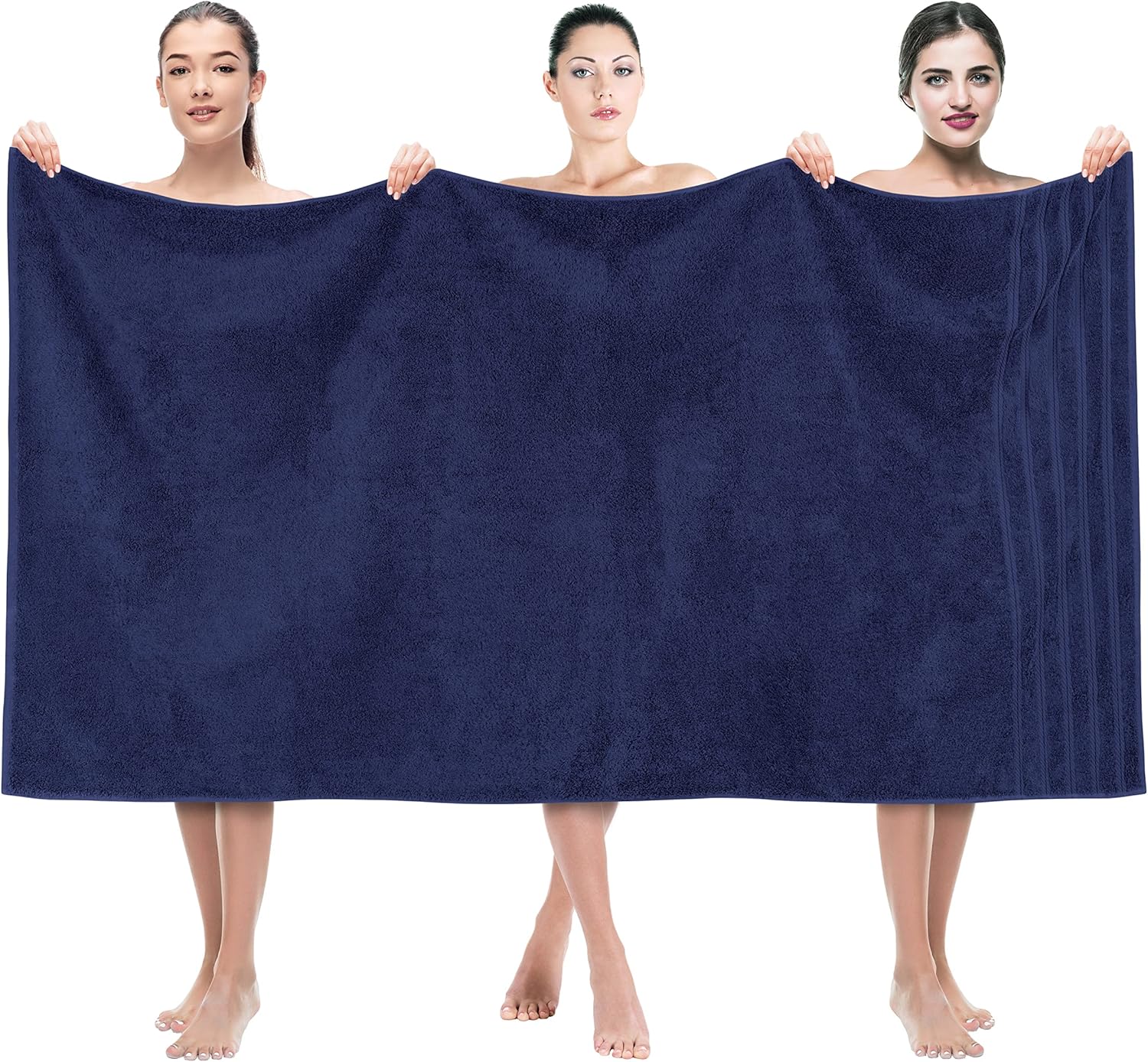 American Soft Linen 35x70 Jumbo Large Bath Towels, 600 GSM 100% Cotton Turkish Bath Sheet, Oversized Luxury Bath Towels for Bathroom Beach and Pool, Navy Blue