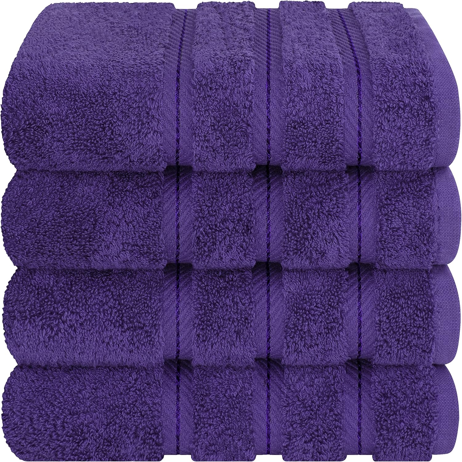 American Soft Linen Luxury Hand Towels for Bathroom, 600 GSM 100% Cotton Turkish 4 Piece Hand Towel Set, 600 GSM Hand Face Towels for Kitchen, Purple Hand Towels