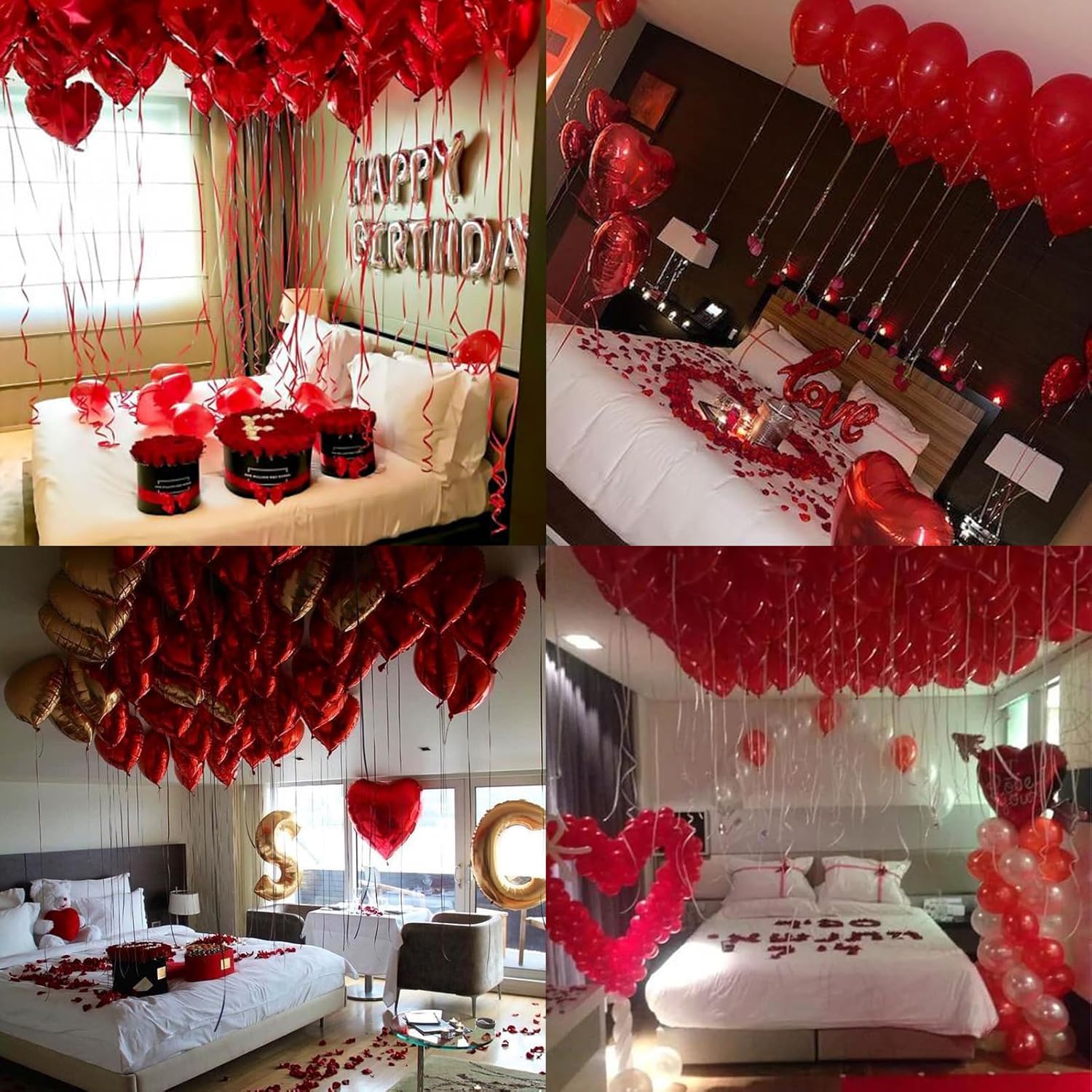 High Quality Materials - Balloons are made of high quality with thick skin that won' t easily pop and are TRUE to their color. The latex allows the balloons to stretch very well when you inflate them. You don't need to worry about how long your balloon can last. You can tie the balloon where you want, or fill it with helium, tie it to a red ribbon and float it from the ceiling. It will be a romantic evening just for your love