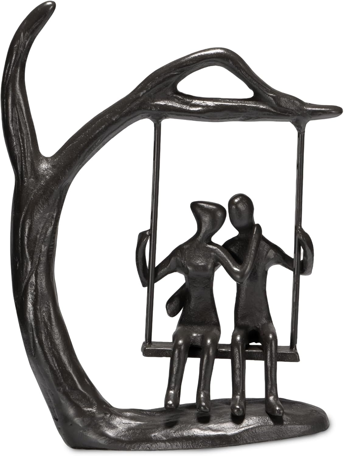 Unique Swing Couple Iron Sculpture: This black metal swing couple statue beautifully captures the joy of love with its elegant, motion-inspired design. Made from durable cast iron, the romantic figurine (4.92" x 2.13" x 6.54") adds charm to any home. A sentimental 6th (iron) or 11th (steel) anniversary gift, perfect for Valentine’s Day, date nights, or milestone celebrations.