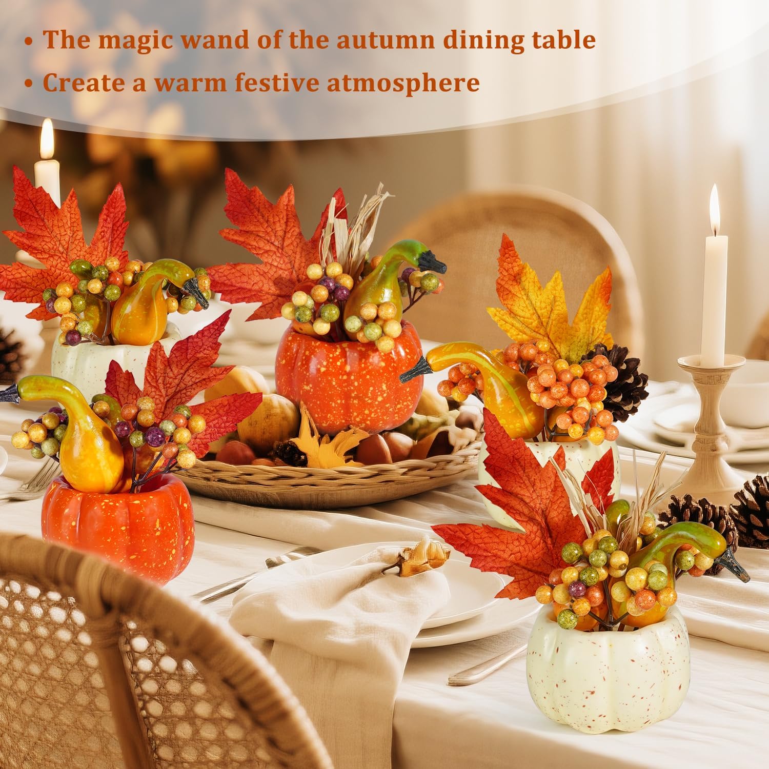 Autumn Decorations: The orange is the color of autumn season, invite your friends to have a holiday dinner at home with our exquisite pumpkins on the dining table, you will receive a lot of compliments.