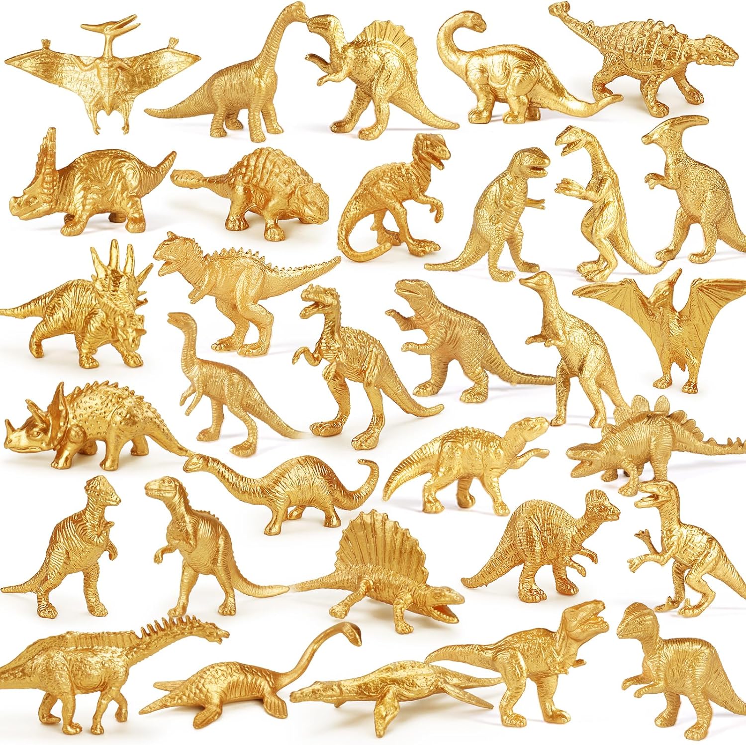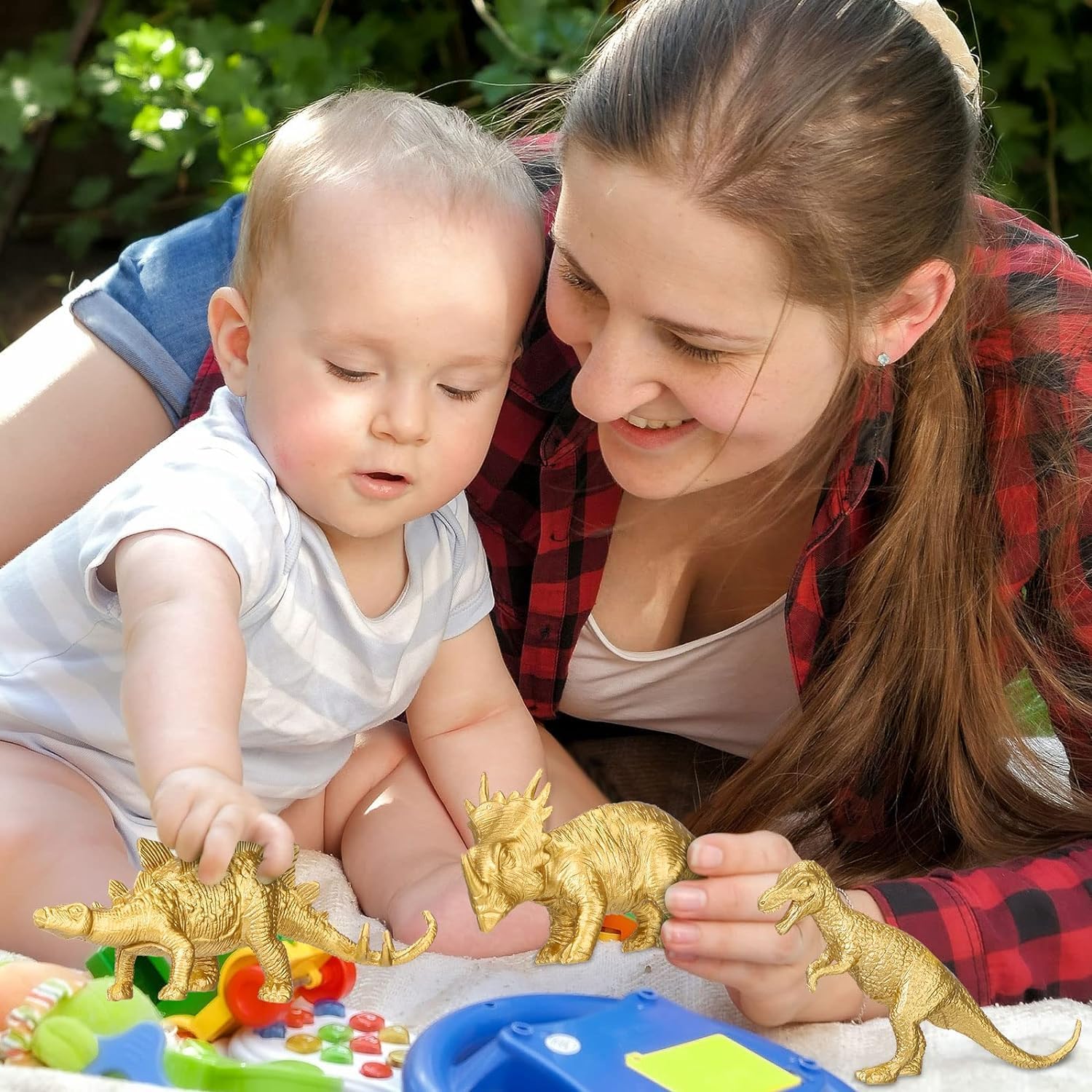 【Special Home Decor and Gift】These dinosaur animal toys can easily be put anywhere in the house to provide different uses. Place them in succulent plants to create a small landscape of a wild jungle, or place them in a bathroom to be the prizes for kids potty training. End of year student gifts from teacher. The gold design of the dinosaur figures adds a special metallic touch to the room. The best gifts for kids and adults who are dinosaur collectors and dinosaur lovers.