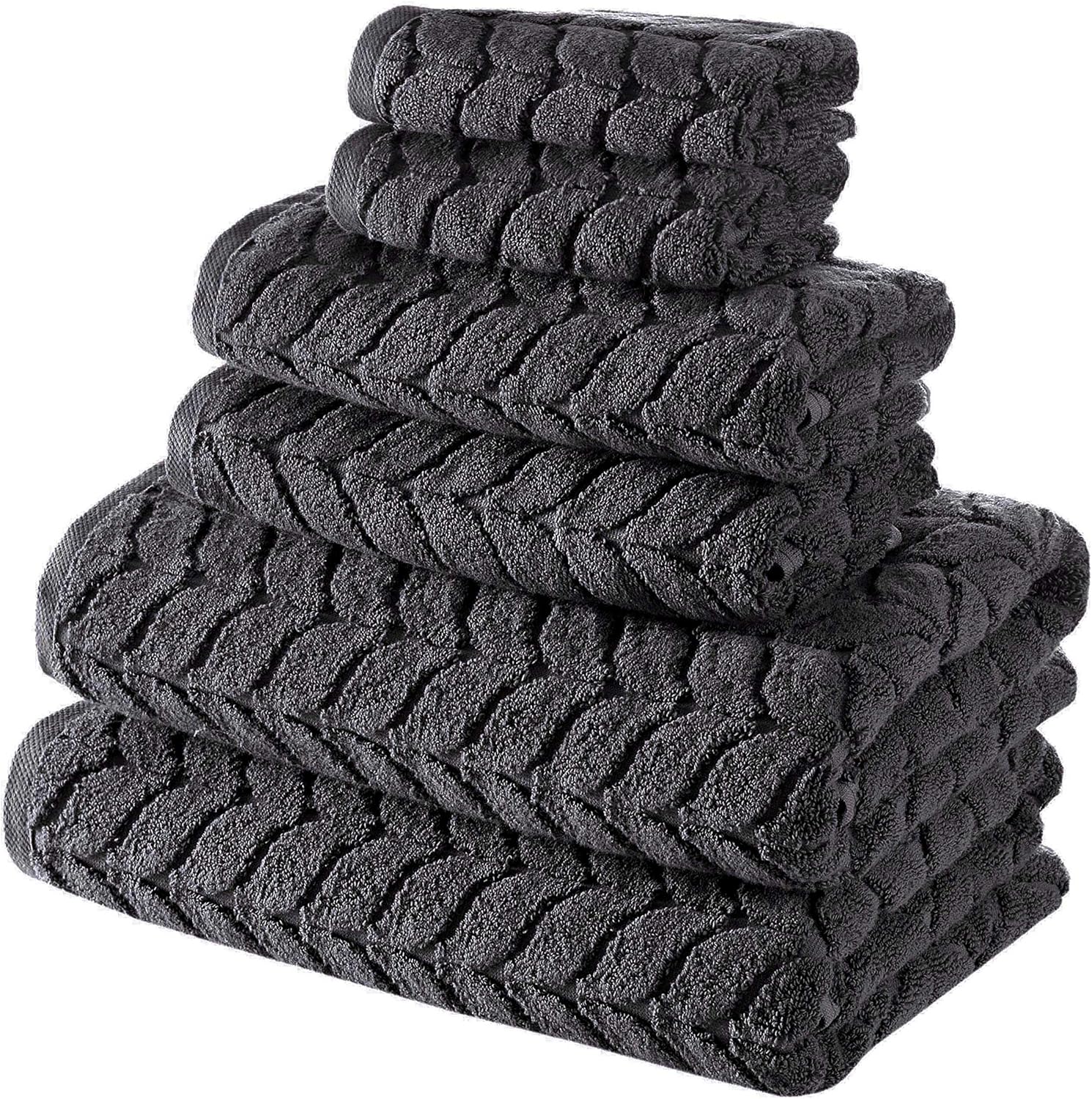 BAGNO MILANO Turkish Bath Towels, Soft Plush Jacquard Luxury Bath Towels, Quick Dry Towel Set (Charcoal, 6 pcs Towel Set)