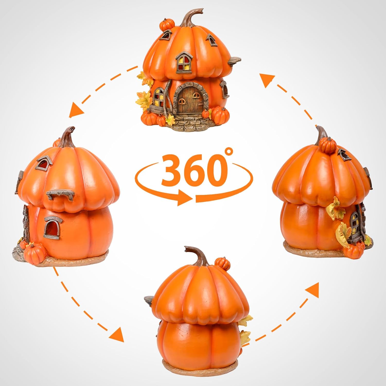 Charming Fall Pumpkin House Design – Crafted to resemble a cozy pumpkin cottage, this LED light-up fall decor brings warmth and charm to your autumn, Thanksgiving, or Halloween setup.