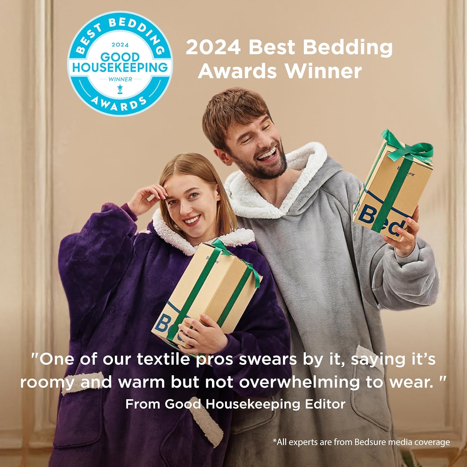 【Good Housekeeping’s 2024 Best Bedding Award】:Our Bedsure Sherpa Fleece Blanket Hoodie won Good Housekeeping’s 2024 Best Bedding Award for its exceptional warmth, ultra-soft flannel exterior, and cozy sherpa lining. “Perfect for ultimate comfort during colder months.” – Good Housekeeping