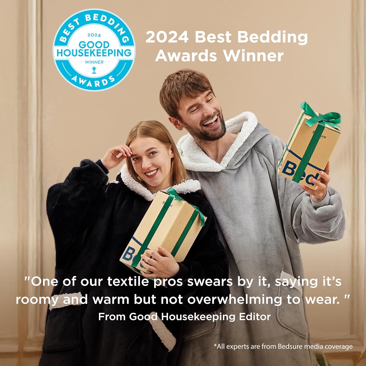 【Good Housekeeping’s 2024 Best Bedding Award】:Our Bedsure Sherpa Fleece Blanket Hoodie won Good Housekeeping’s 2024 Best Bedding Award for its exceptional warmth, ultra-soft flannel exterior, and cozy sherpa lining. “Perfect for ultimate comfort during colder months.” – Good Housekeeping