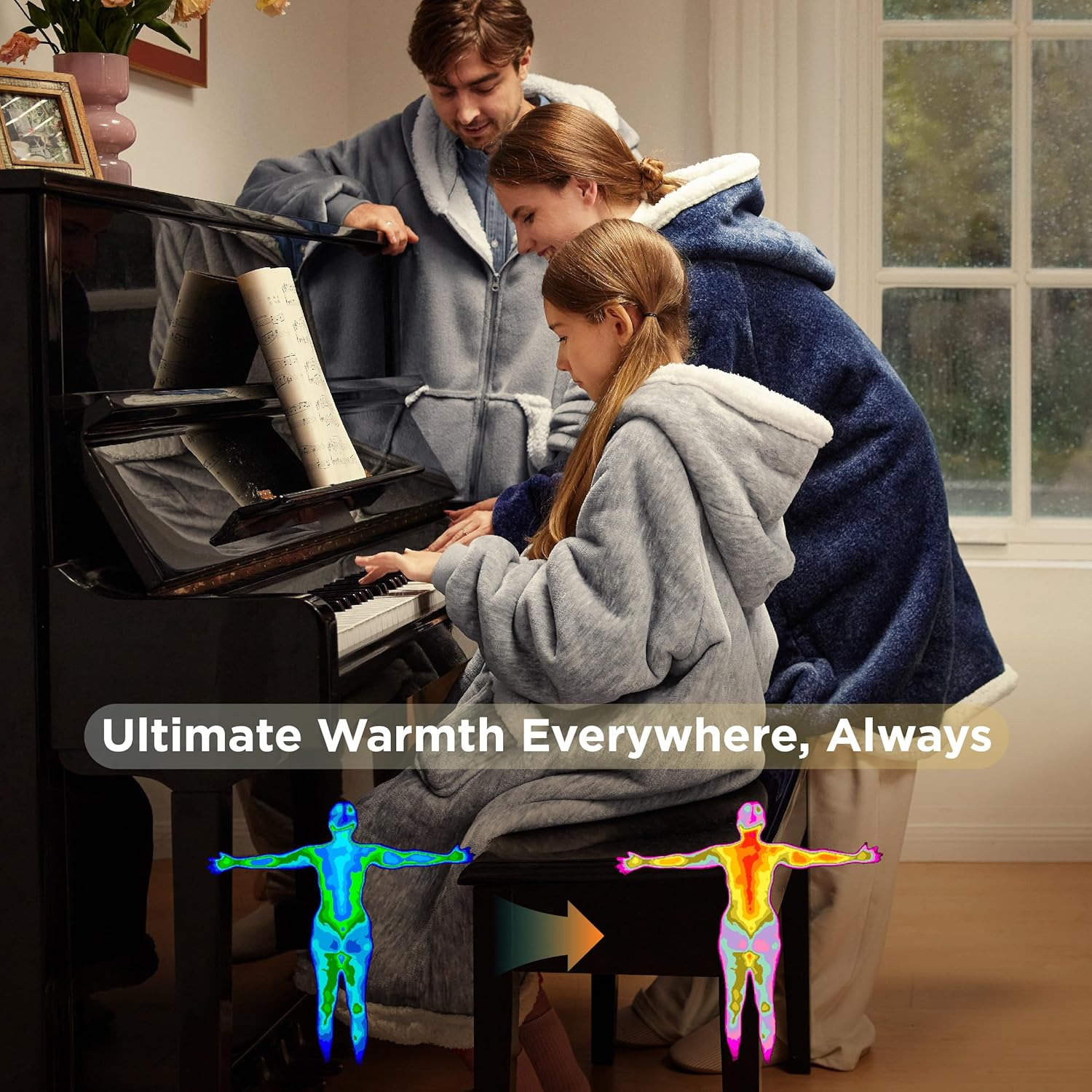 Versatile and Practical Design:This blanket hoodie allows you to keep your arms free while staying warm and comfortable. Whether you’re reading, watching TV, or lounging around, it’s a perfect fit. With deep side pockets for storing small items or warming your hands, and ribbed cuffs to keep cold air out, this wearable blanket hoodie maximizes comfort during any activity