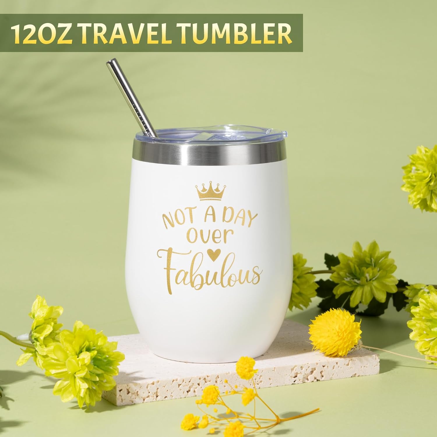 【WOMENS BIRTHDAY GIFTS】This cozy flannel blanket is like a warm hug in gift form—super soft, fluffy, and perfect for stylish lounging. The "Not A Day Over Fabulous"12oz insulated tumbler keeps drinks hot or cold, ideal for morning coffee or a nightcap. And the handmade bracelet plus the timeless knit flower—Total heart-melters. This birthday-themed gift set will make people feel: "I didn't just flip the page and click randomly - I really thought about this.”