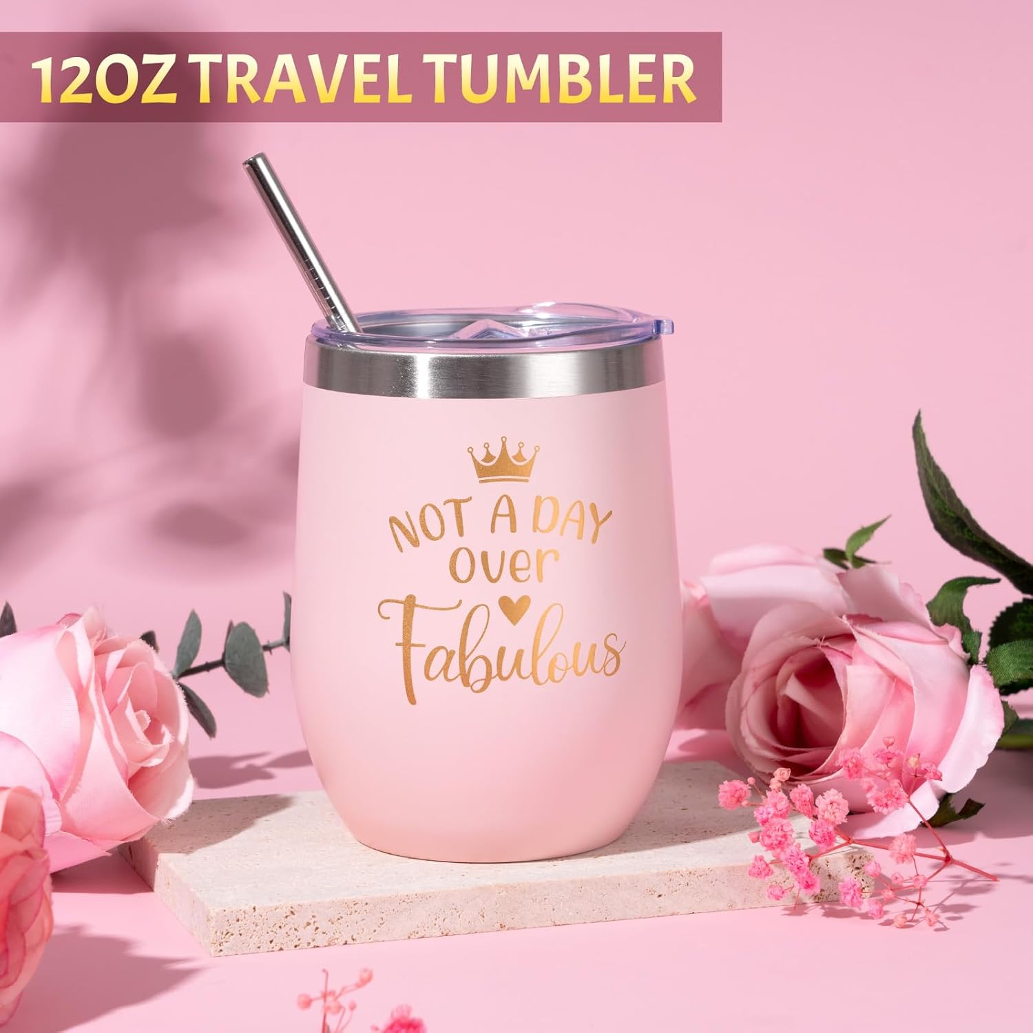 【WOMENS BIRTHDAY GIFTS】This cozy flannel blanket is like a warm hug in gift form—super soft, fluffy, and perfect for stylish lounging. The "Not A Day Over Fabulous"12oz insulated tumbler keeps drinks hot or cold, ideal for morning coffee or a nightcap. And the handmade bracelet plus the timeless knit flower—Total heart-melters. This birthday-themed gift set will make people feel: "I didn't just flip the page and click randomly - I really thought about this.”