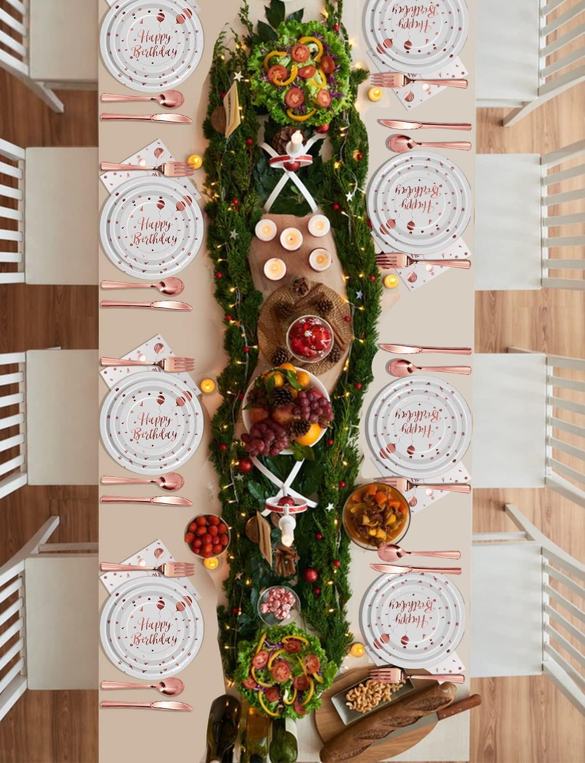 Birthday Party Tableware, 161 Pieces Rosegold Party Supplies, Party Dinnerware Sets Include Paper Plates Napkins Cups Silverware, for Shower Engagement Parties Decoration -20 Serves