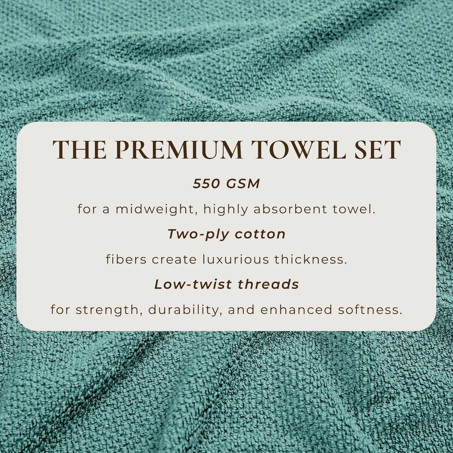 Low-Twist & Two-Ply Cotton: These towels are crafted from quality cotton. The fibers are low-twist, which means there is more air and space between the woven fibers - leaving you with softer, more absorbent towels. The cotton fibers are also two-ply, forming a more thicker, durable strand.