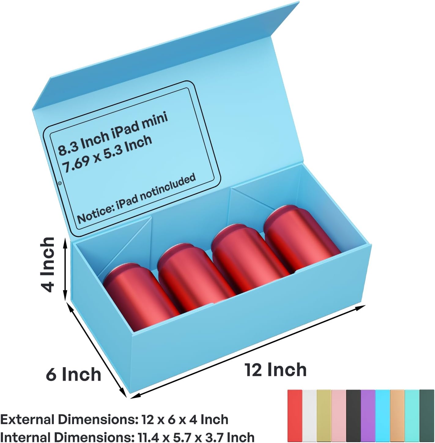 🎁SlZE - Gift boxes for presents External dimensiong 12x6x4 inches (Internaldimensions are 11.4x5.7x3.7 inches),Collapsible gift box can holdchocolates, candies, cosmetics, perfumes, jewelry, candles, cups, souvenirs orsmaller clothing accessories and more.(all dimensions are measured manuallywith deviation (range) at 0-0.2 inches)