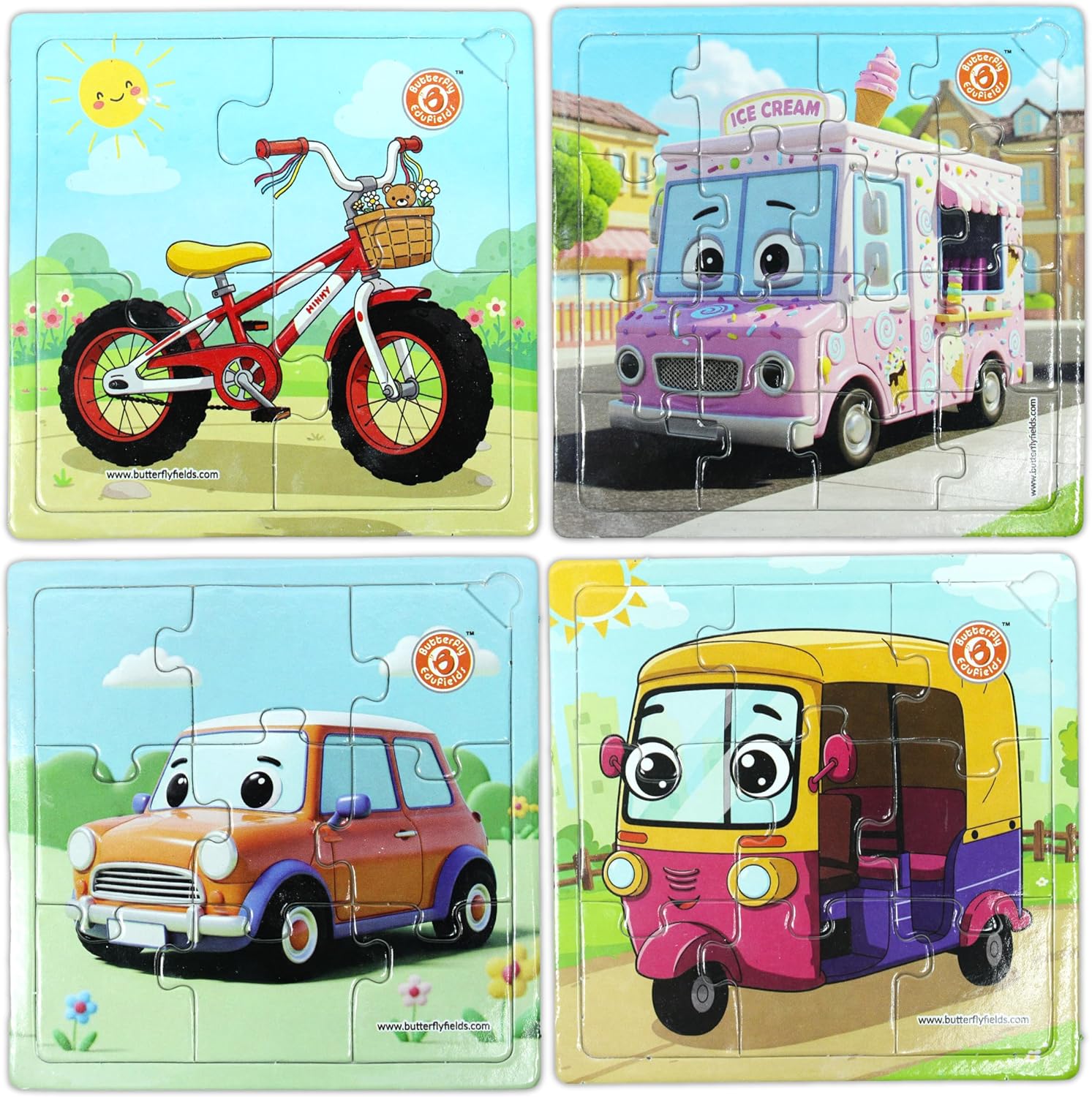 Butterfly EduFields 4-in-1 Vehicles Jigsaw Puzzle Set for Kids Age 3-7 | 38 Pcs Brain-Boosting Puzzle Toy with Coloring Worksheets for Boys & Girls | Preschool Learning