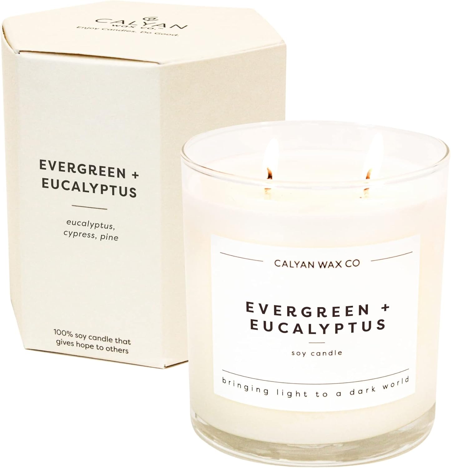 Calyan Wax Co. 심지 캔들 2개, 에버그린 + 유칼립투스 향초, 연소 시간 37시간, 아로마테라피 소이 캔들, 무독성 및 비건 소이 왁스, 유리 텀블러 향초, 354.4g(12.5온스)