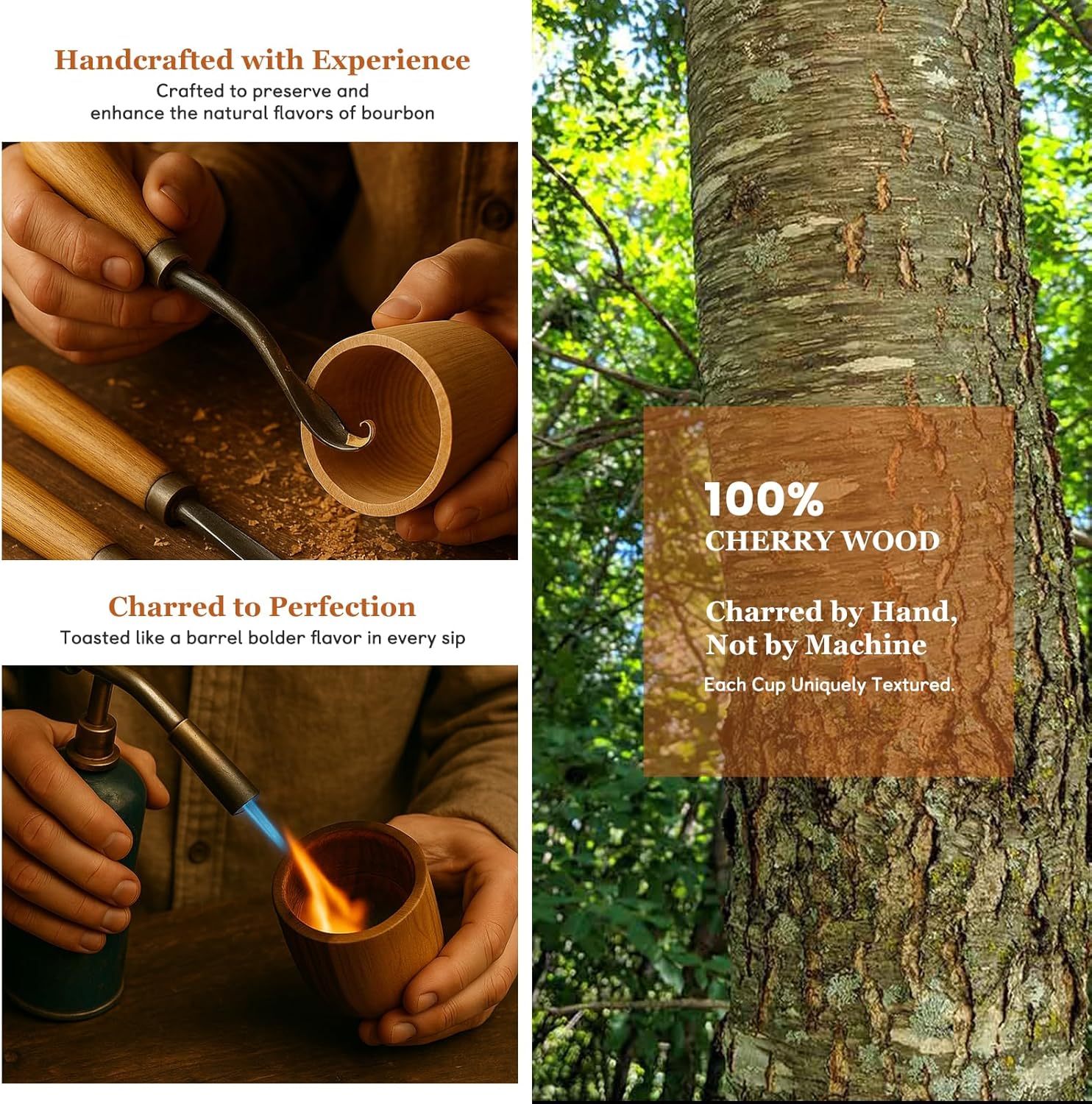 Built to Last & Easy to Maintain:Treated with a waterproof seal to prevent leaks. Simply rinse with water and air dry after use. Over time, the wood grain develops a richer patina from whiskey absorption (for longevity, occasional food-grade mineral oil conditioning is recommended).