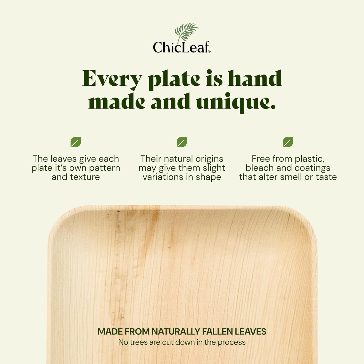 Chic Leaf Compostable & Biodegradable Palm Leaf Disposable Bamboo Plates - Disposable Party Plates for Appetizers - Camping Essentials - Reusable Party Supplies (10 & 7 Inch Square)