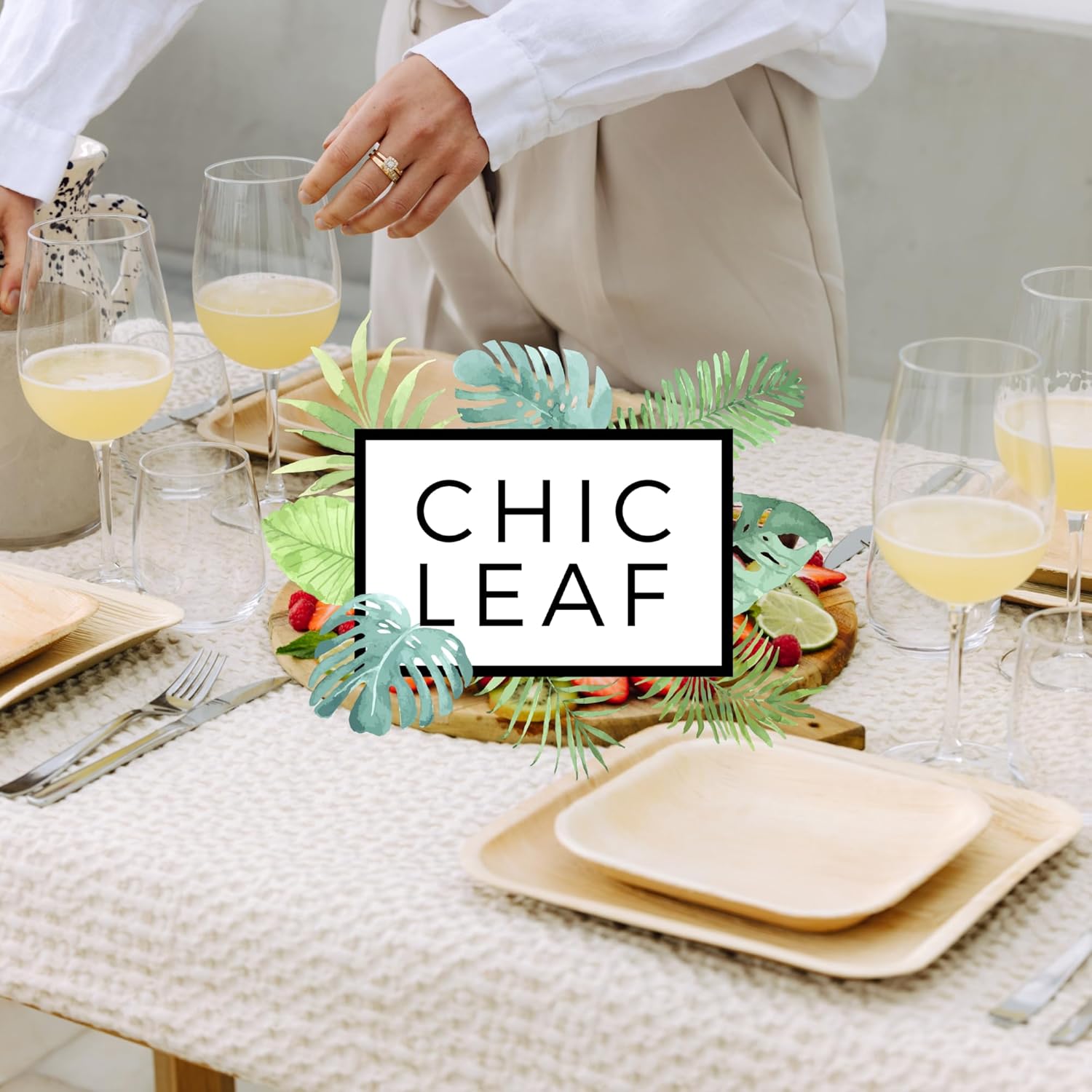 Chic Leaf Compostable & Biodegradable Palm Leaf Disposable Bamboo Plates | Disposable Party Plates for Appetizers - Party Supplies (6'' - 20 Pack)