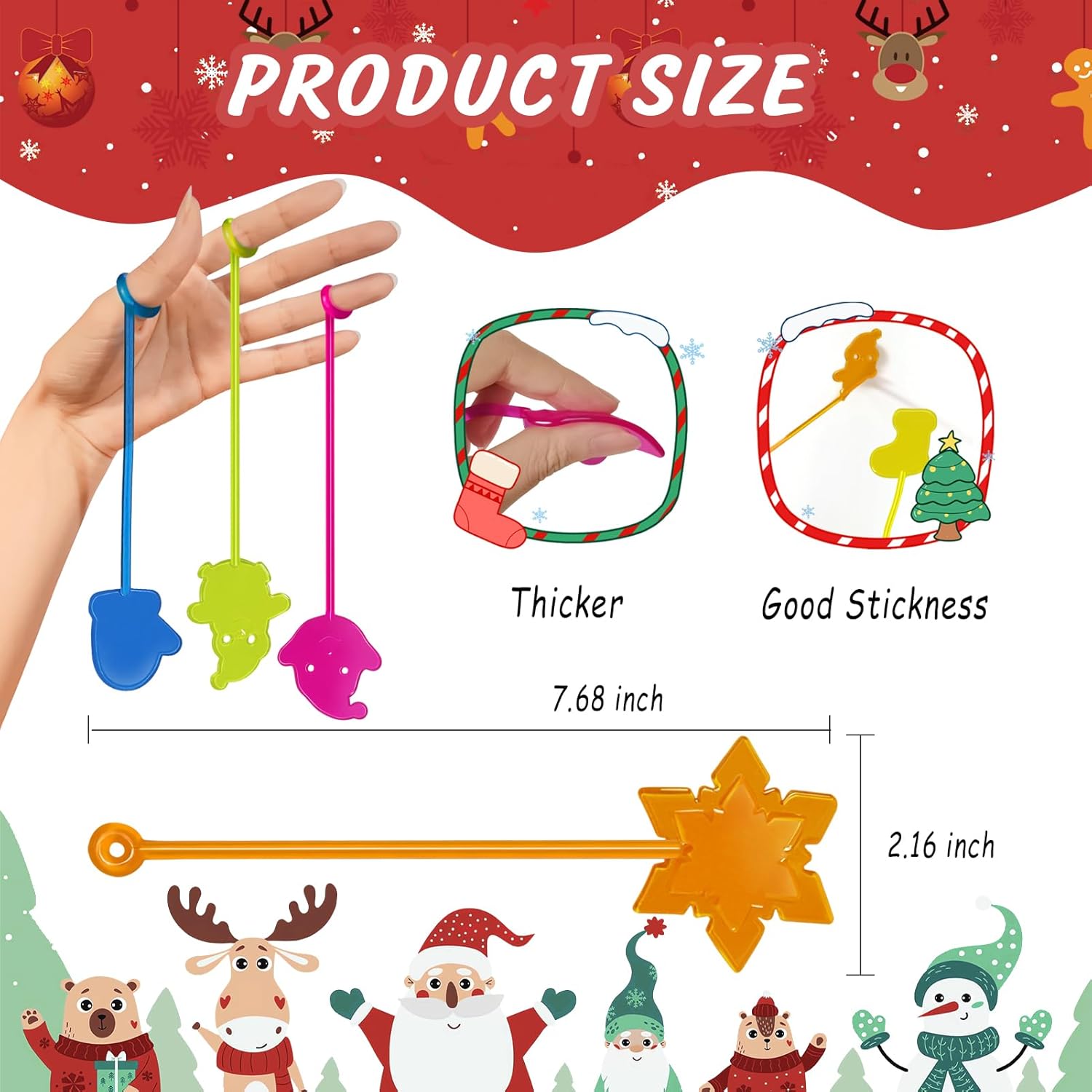 Christmas Sticky Hands Kids Party Favors: 42 Pcs christmas sticky hand toy set have cool style (christmas trees, snowflakes, gloves, socks, snowmen, clowns, bell), christmas sticky toys christmas party favors for kids 8-12 made of non-toxic and child-safe material. Not easy to tear or break. Use as christmas goodie bags stuffers, christmas party favors for kids 4-8 christmas party favors for kids 3-5, bulk christmas party favors for kids christmas goodie bag fillers sticky christmas toys bulk.
